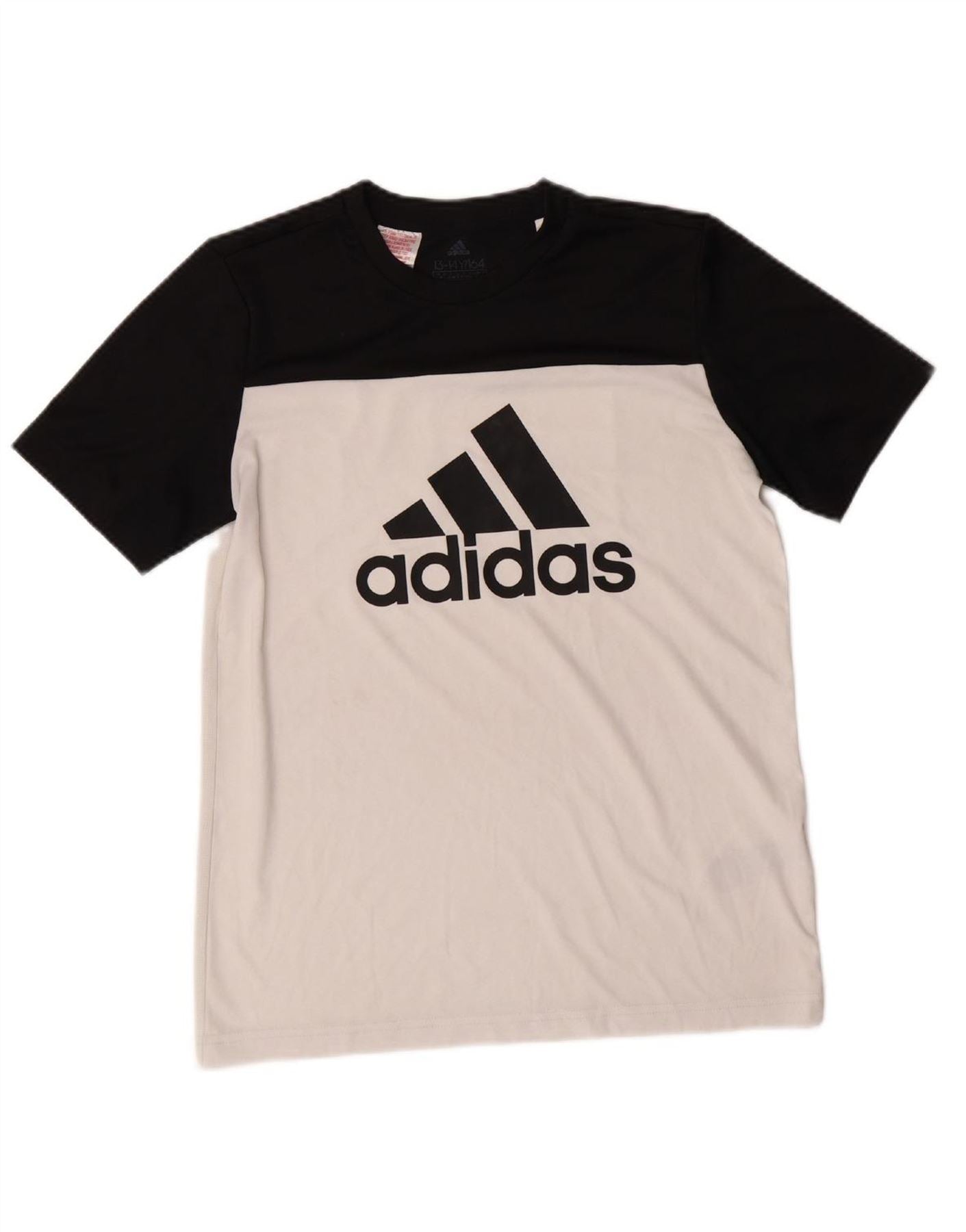 ADIDAS Boys Aeroready Graphic T-Shirt Top 13-14 Years Off White
