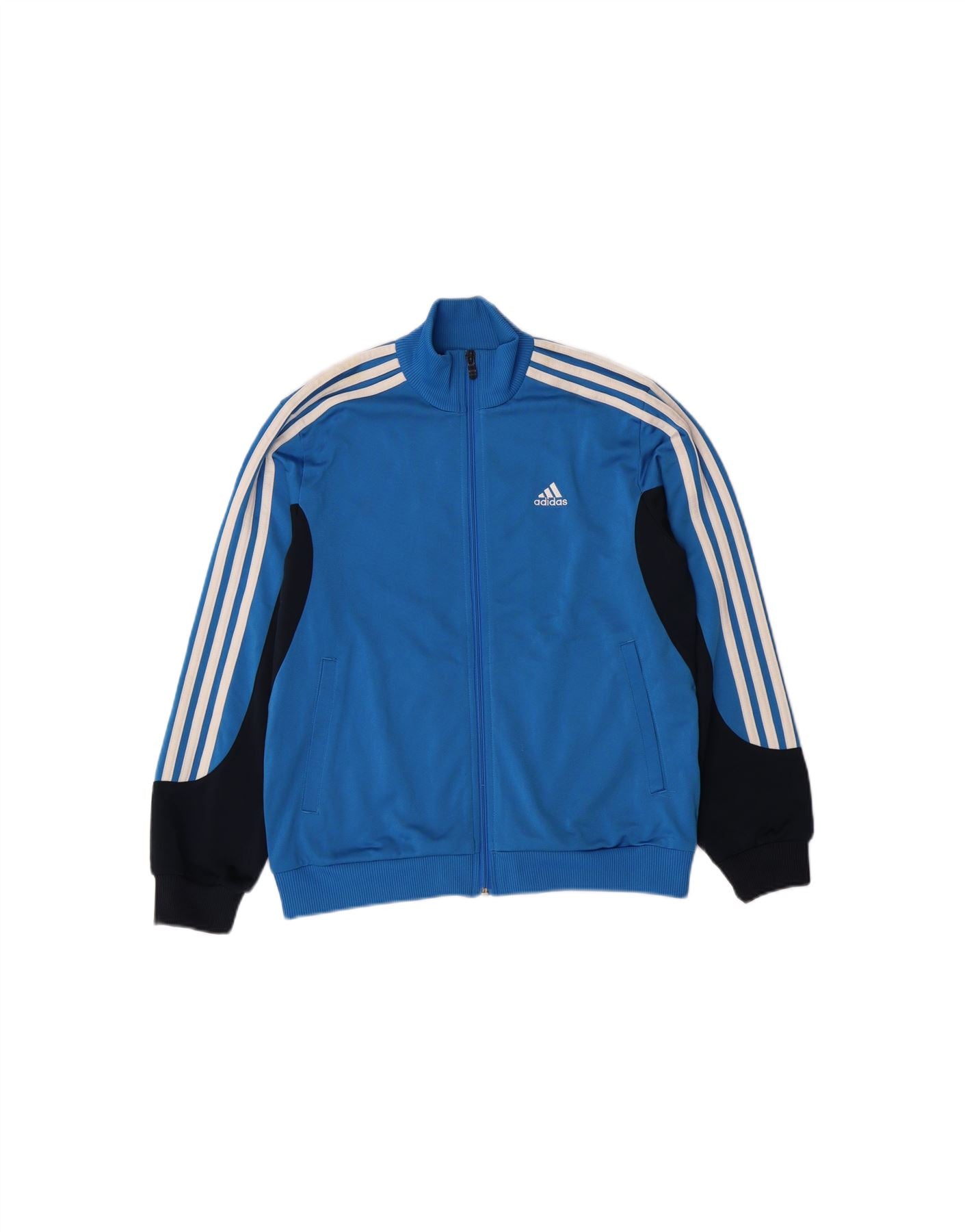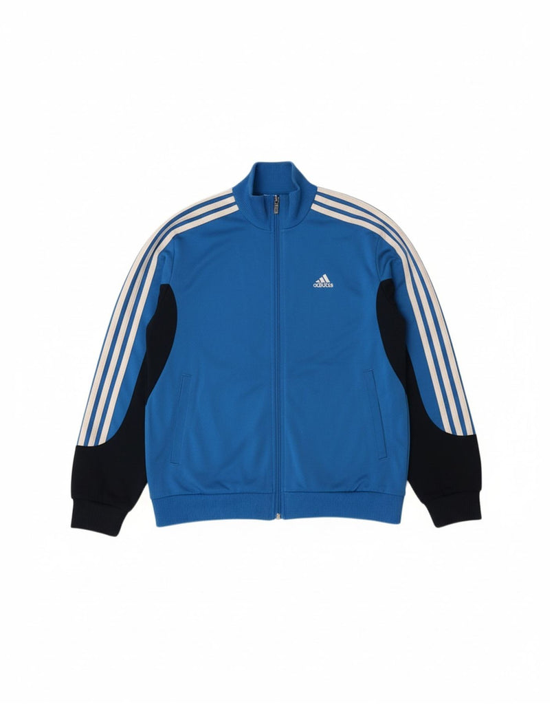ADIDAS Boys Tracksuit Top Jacket 11-12 Years Blue Colourblock Polyester