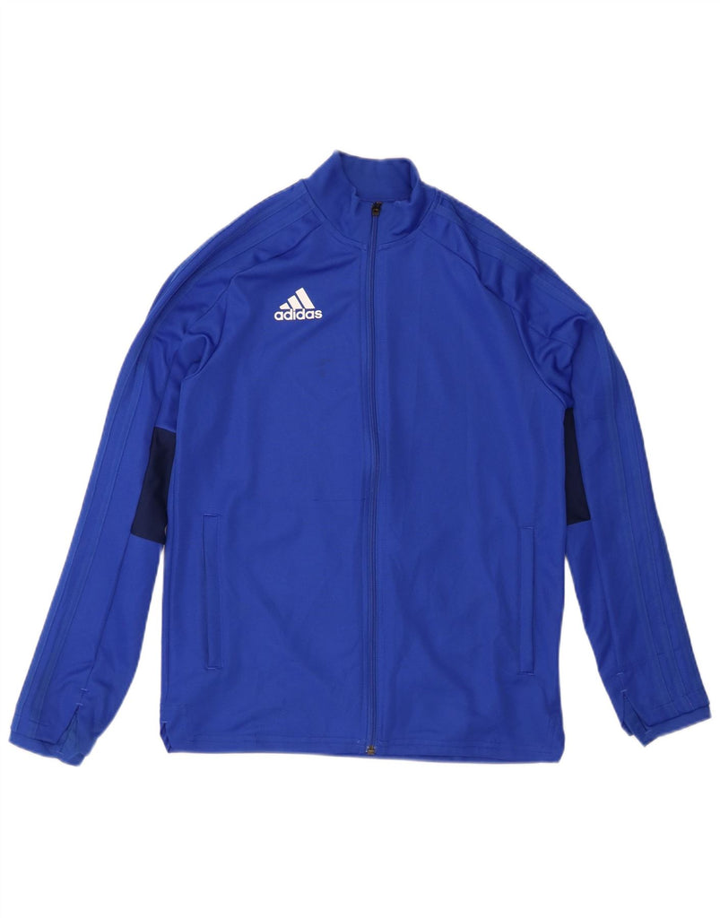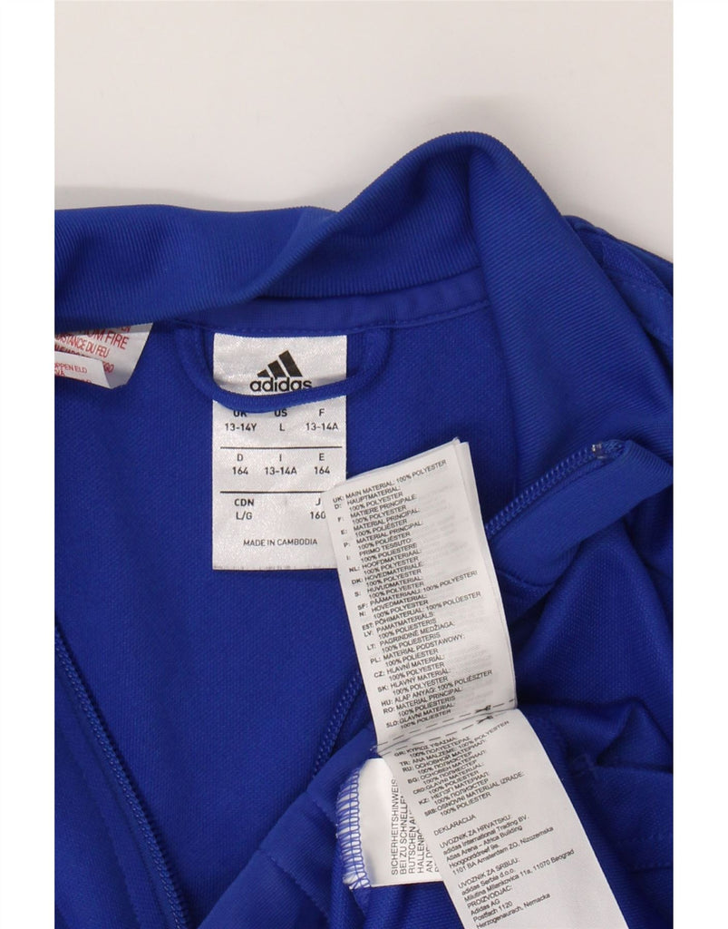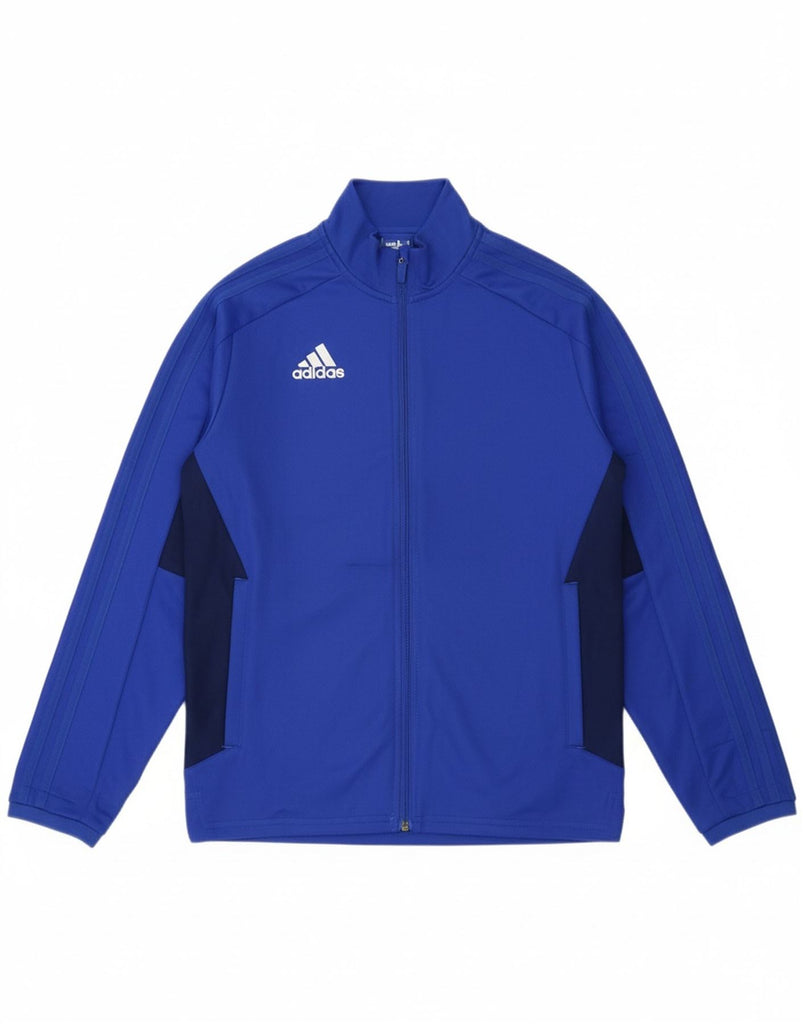 ADIDAS Boys Tracksuit Top Jacket 13-14 Years Blue Colourblock Polyester
