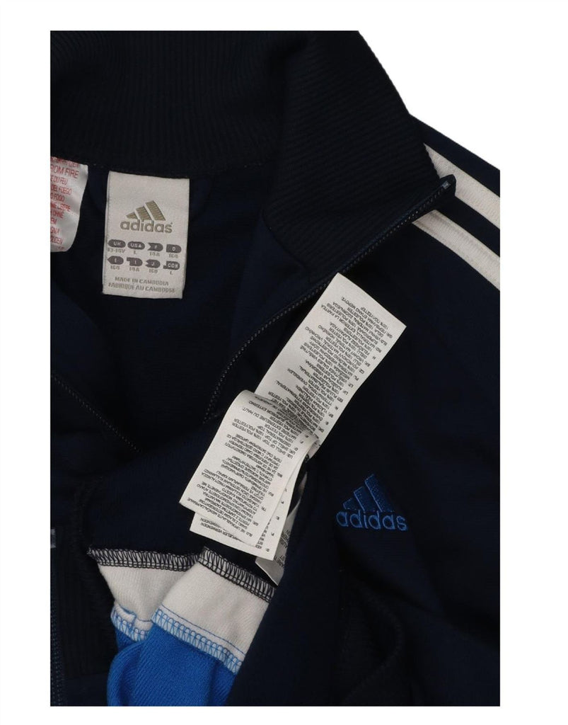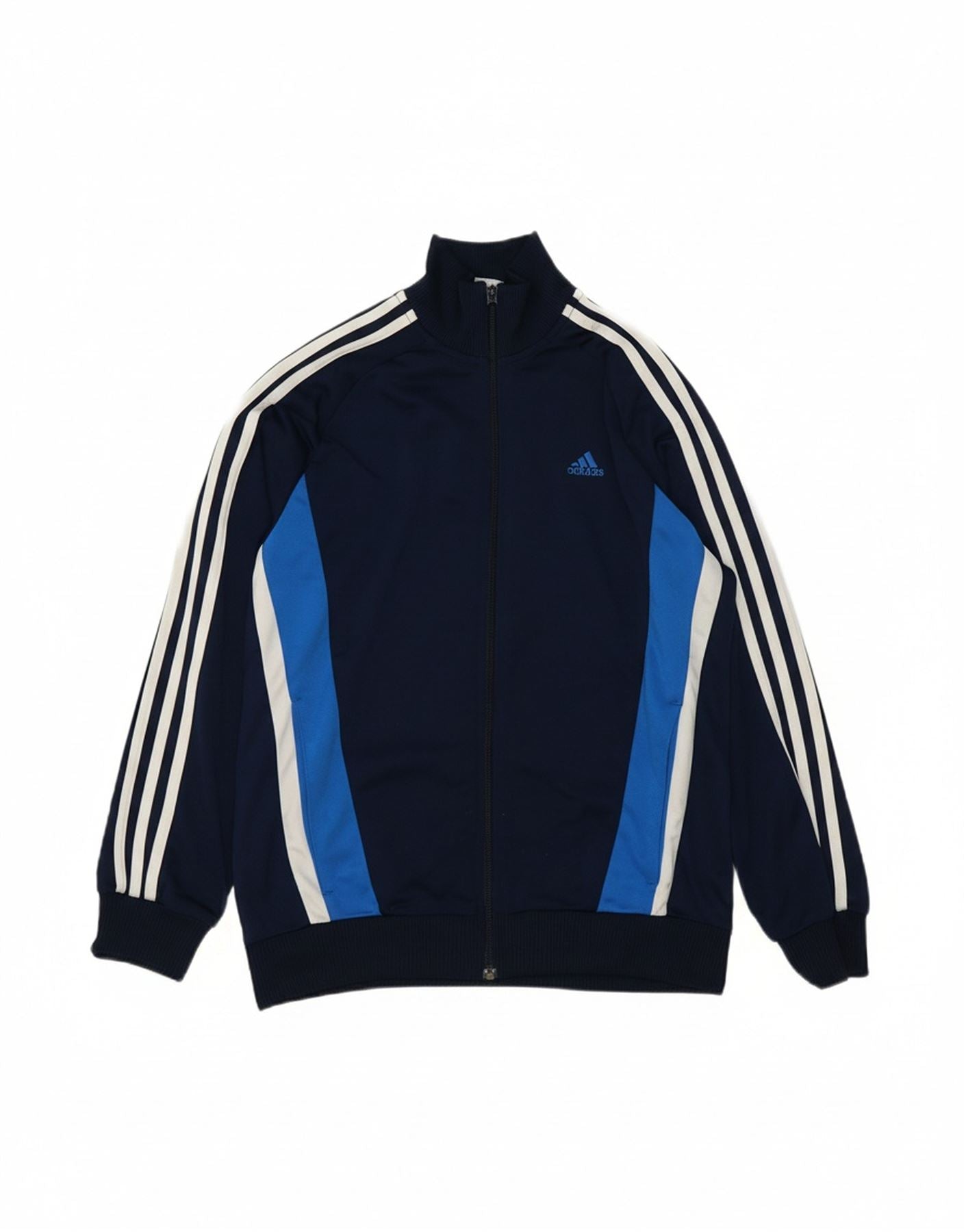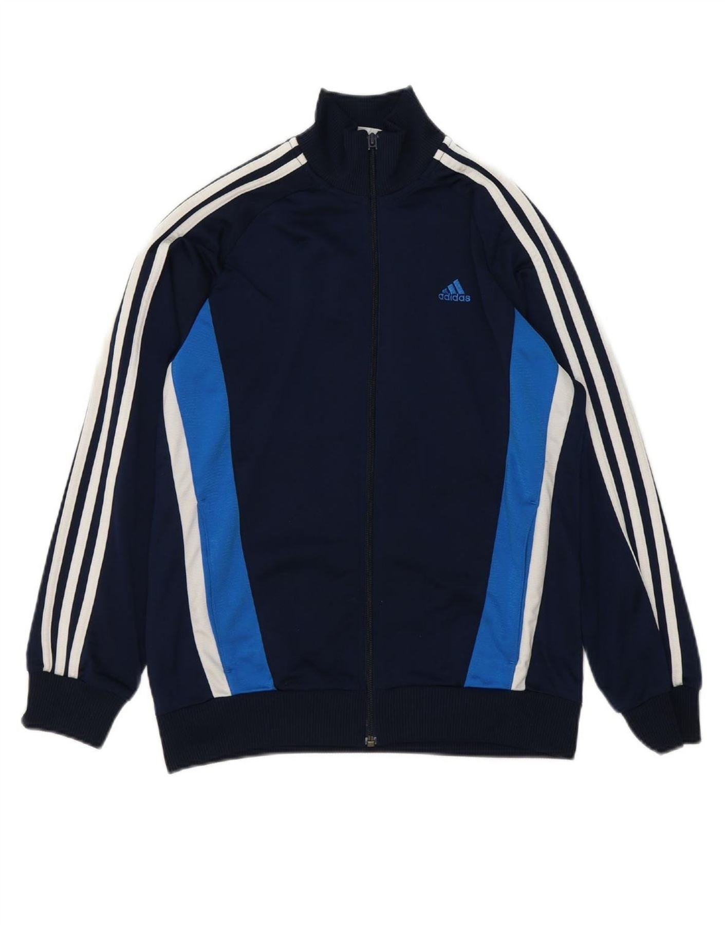 ADIDAS Boys Tracksuit Top Jacket 13-14 Years Navy Blue Colourblock