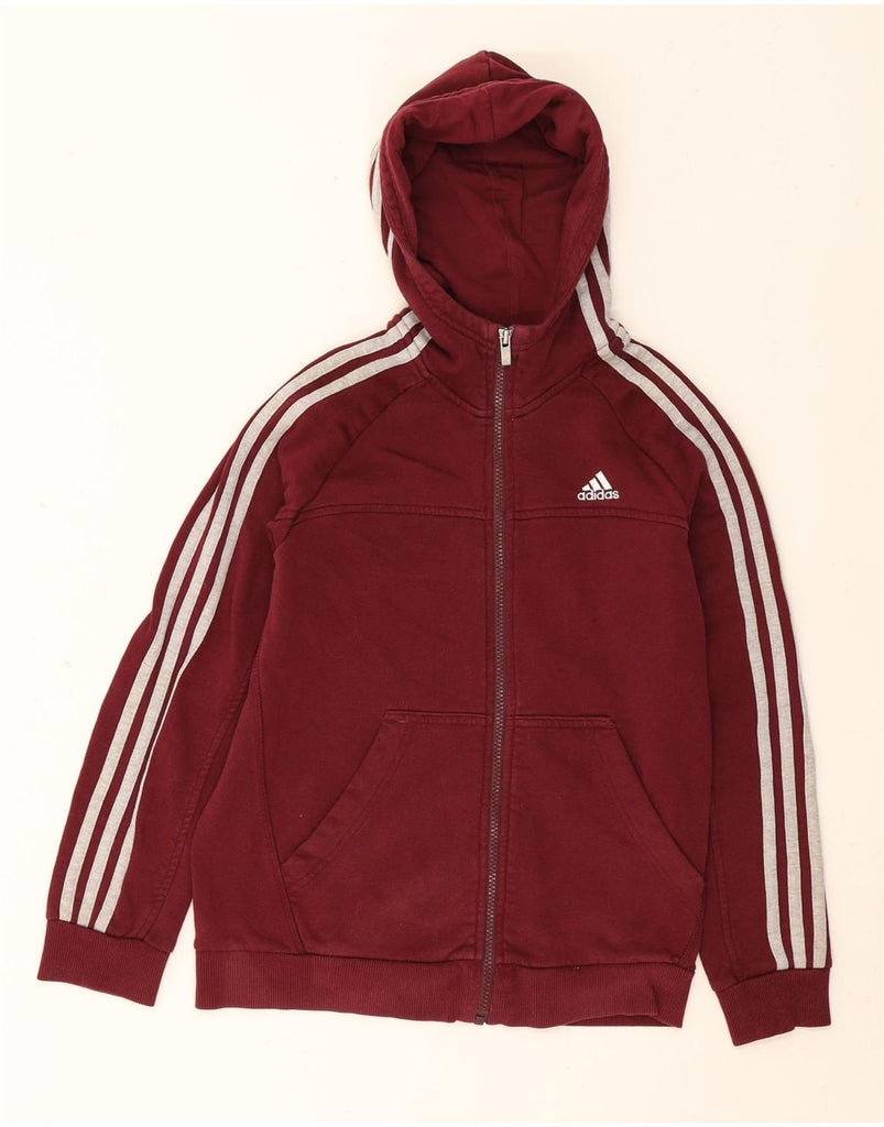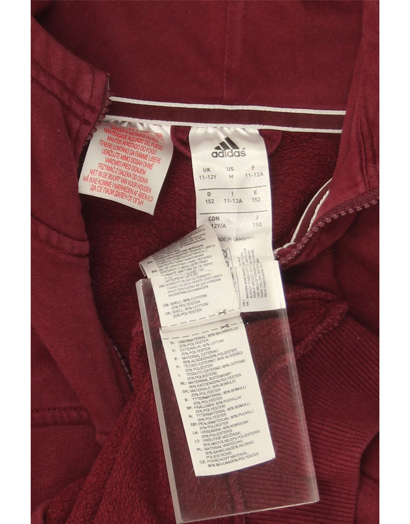 ADIDAS Boys Zip Hoodie Sweater 11-12 Years Burgundy Cotton