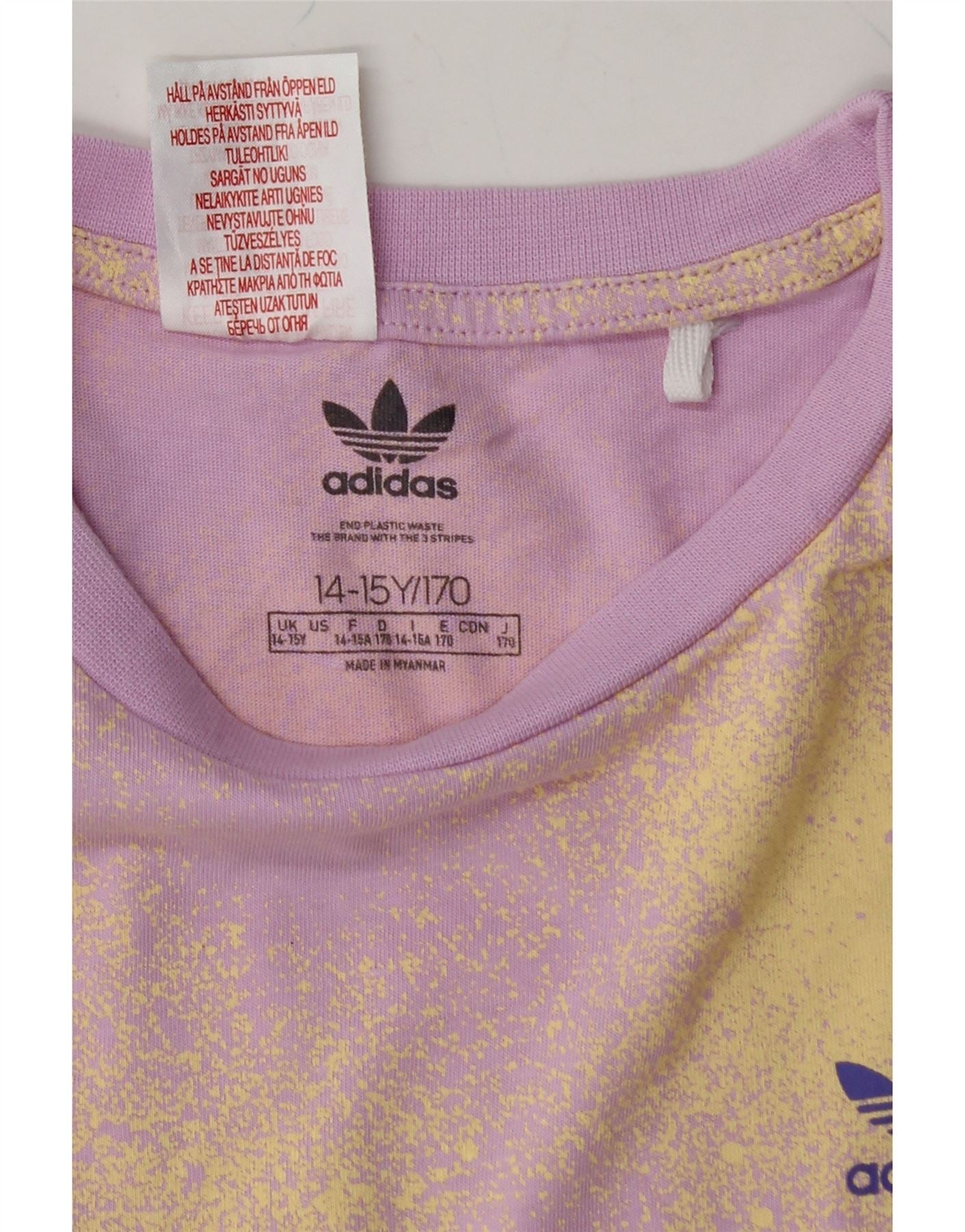 ADIDAS Girls Crop T-Shirt Top 14-15 Years Pink Tie Dye Polyester