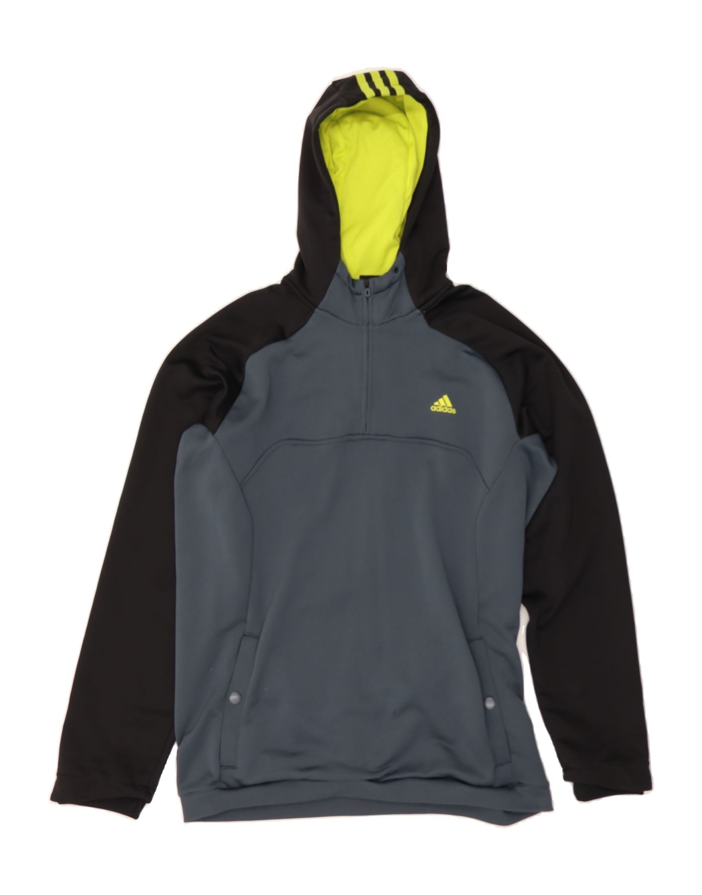 ADIDAS Mens Climacool Zip Neck Hoodie Jumper Large Grey Colourblock