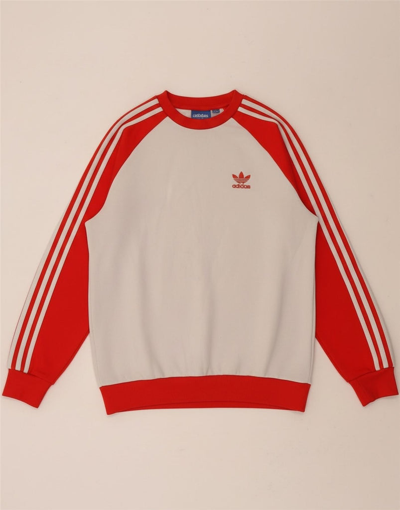 ADIDAS Mens Graphic Sweatshirt Jumper Medium White Colourblock Polyester
