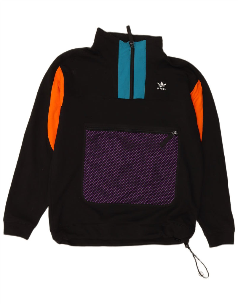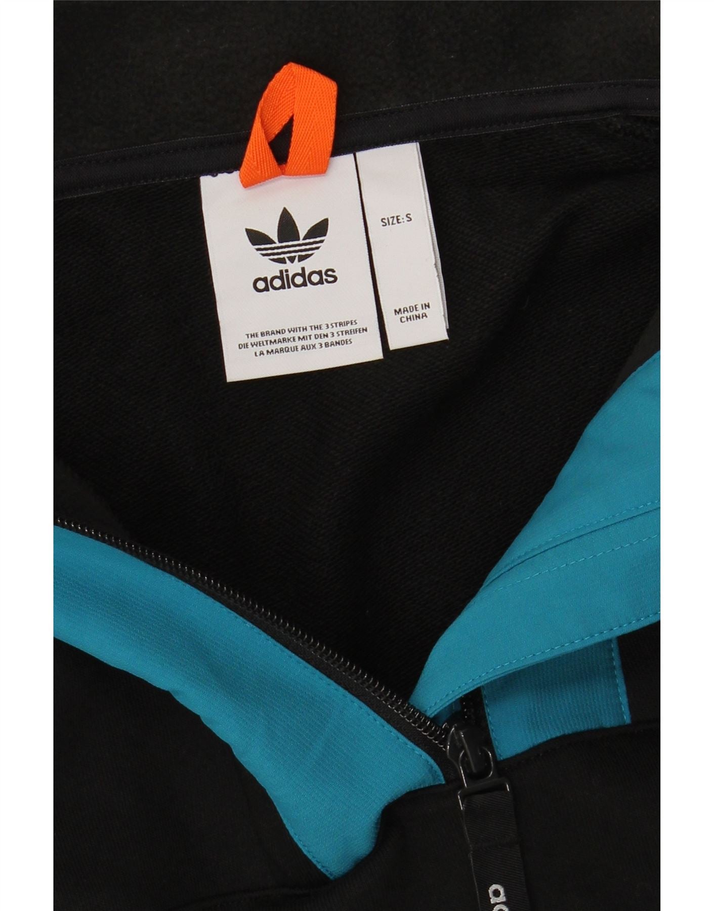 ADIDAS Mens Zip Neck Sweatshirt Jumper Small Black Colourblock Cotton