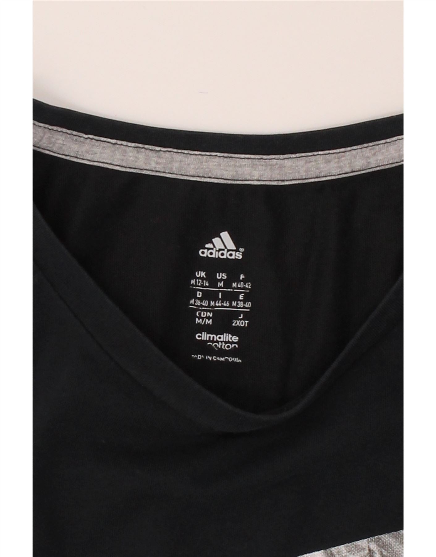 ADIDAS Womens Climalite Graphic T-Shirt Top UK 12/14 Medium Black Cotton