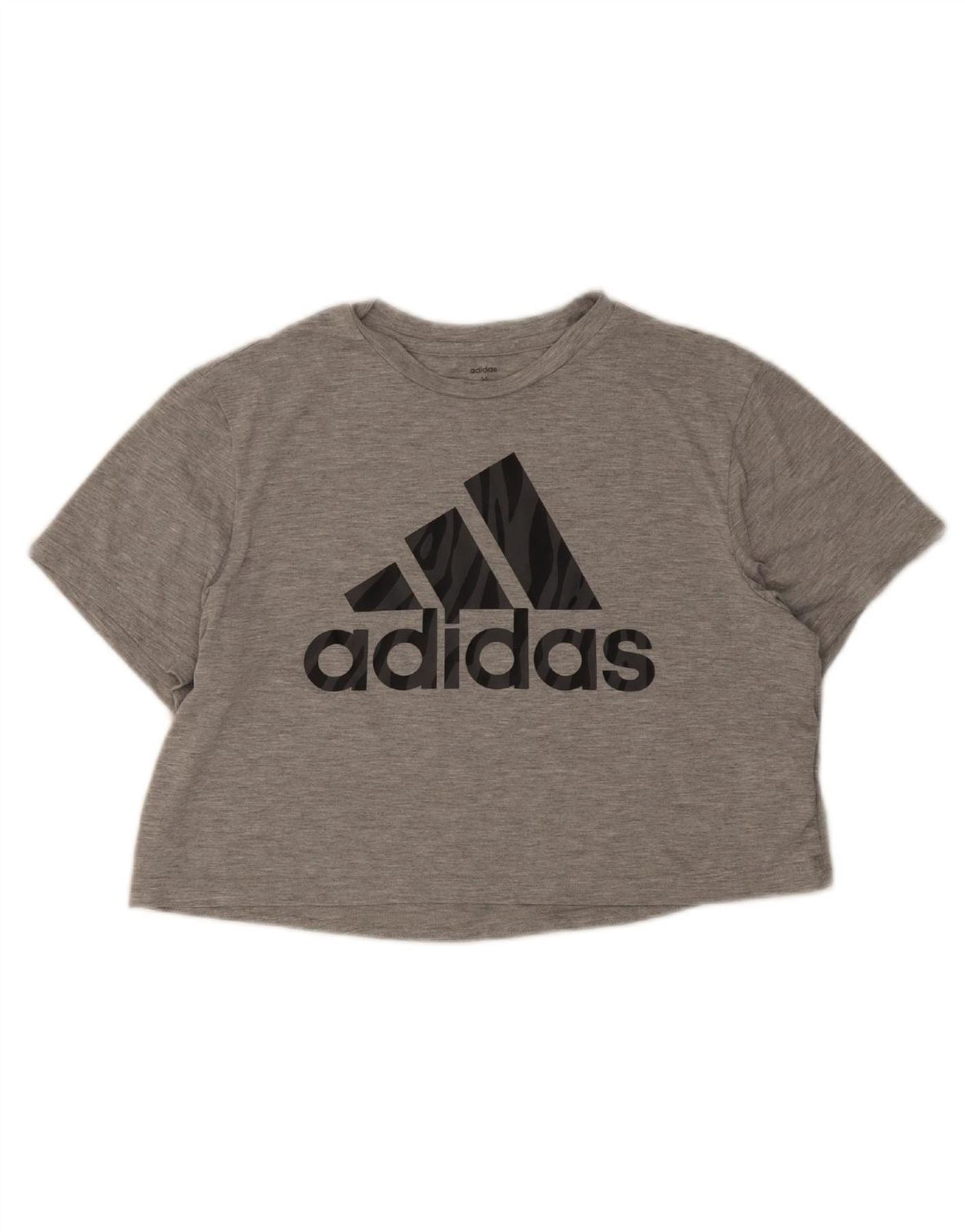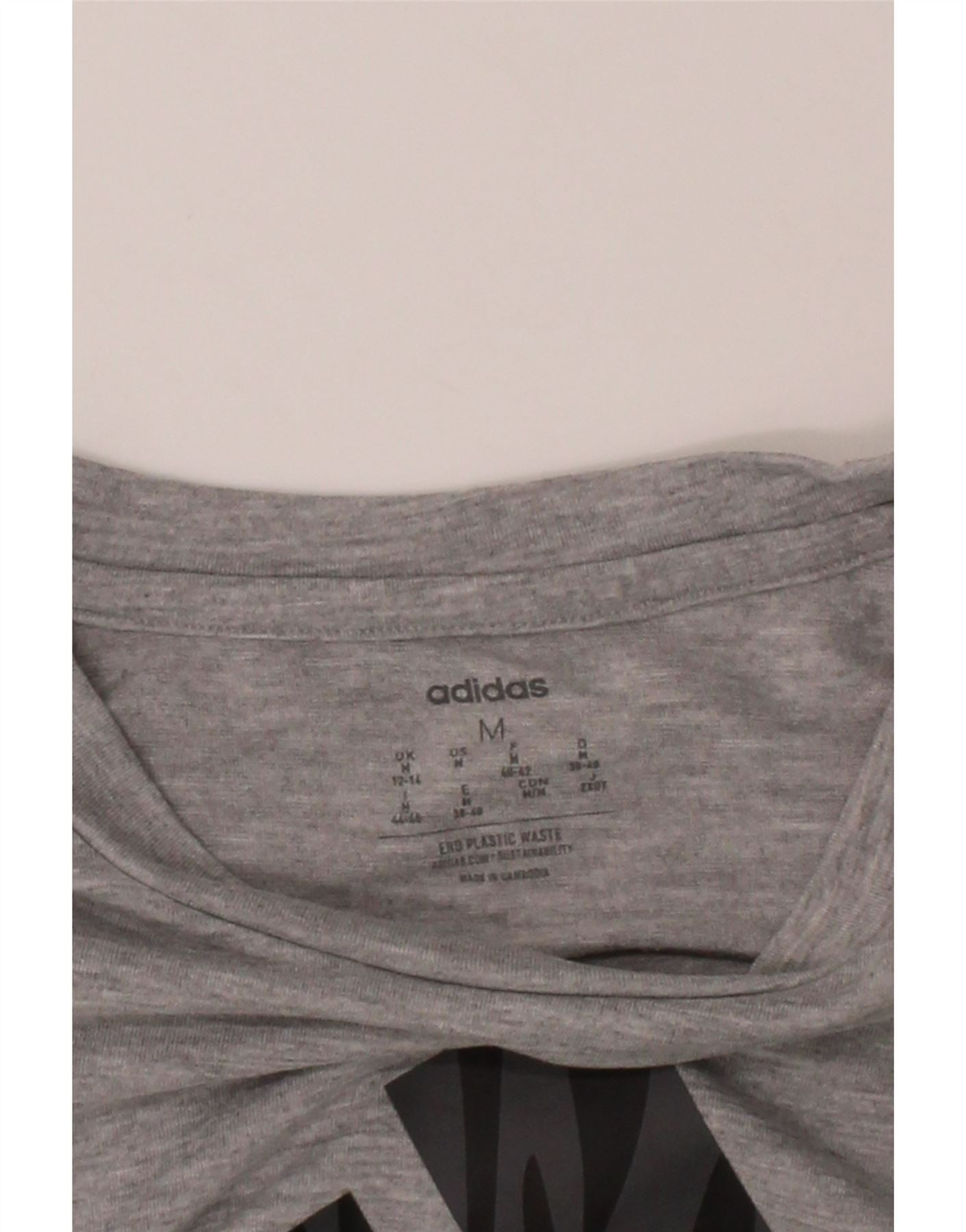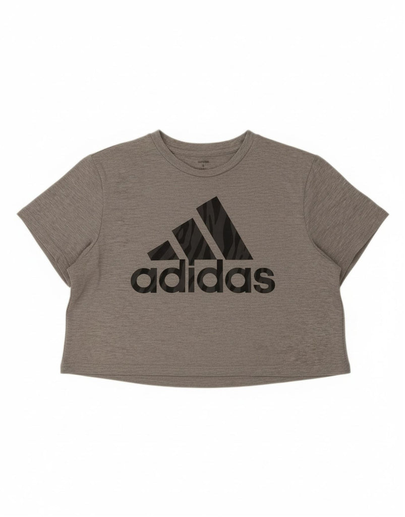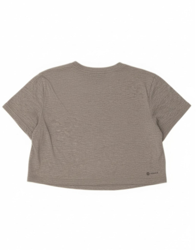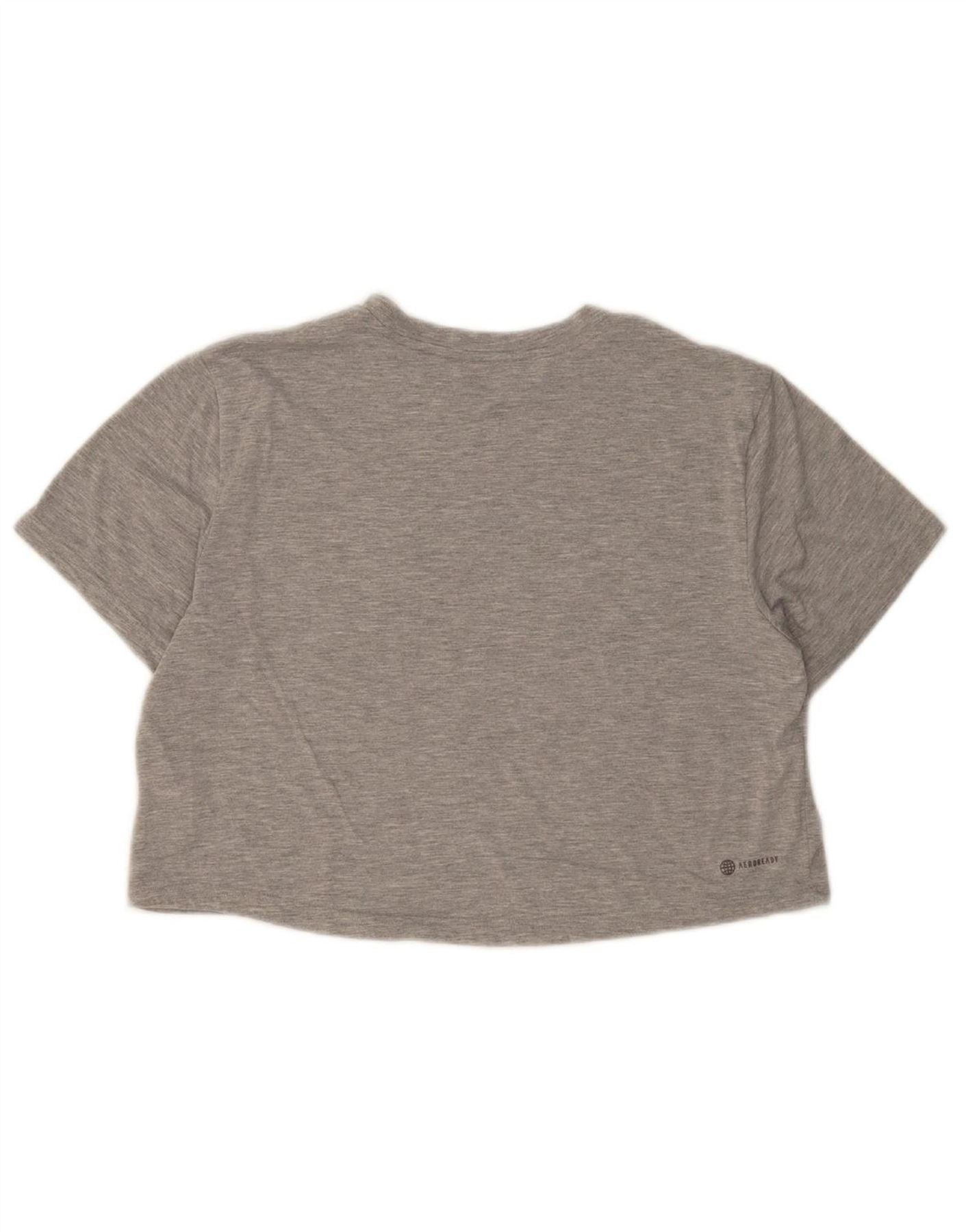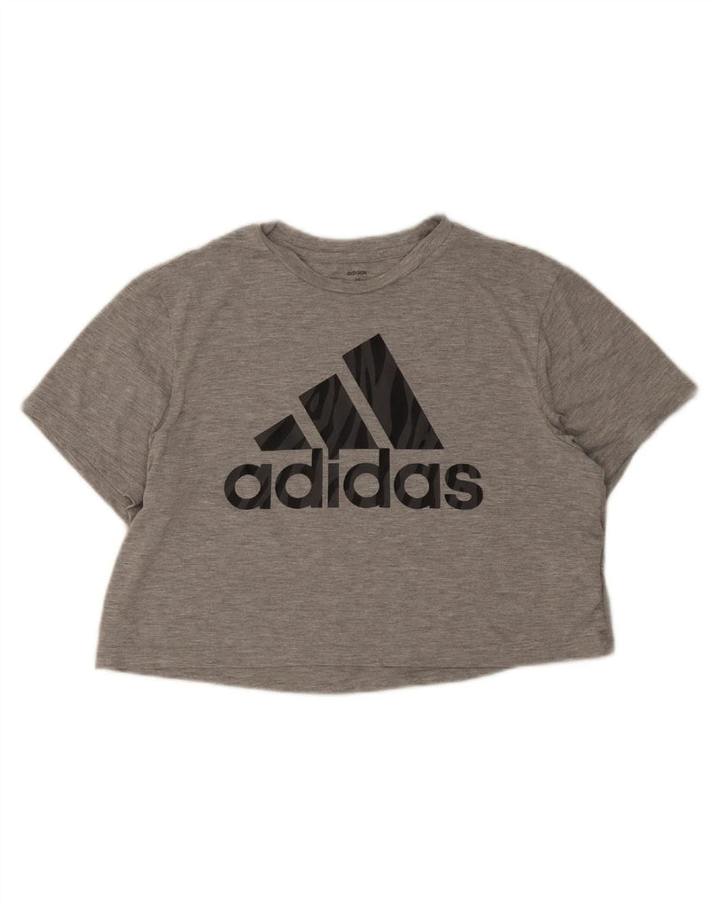 ADIDAS Womens Crop Graphic T-Shirt Top UK 12/14 Medium Grey Polyester