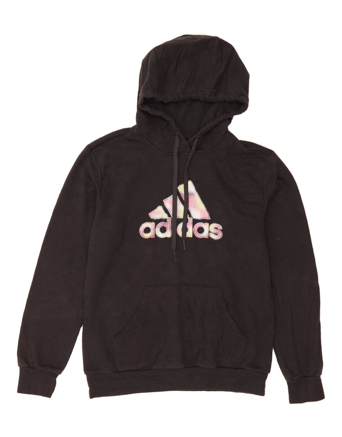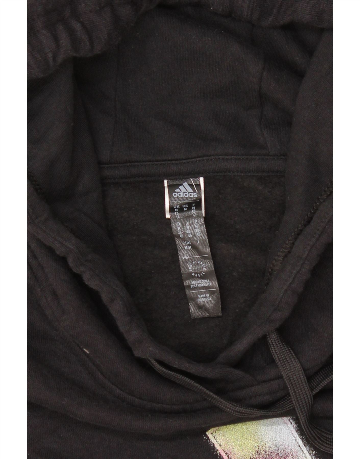 ADIDAS Womens Graphic Hoodie Jumper UK 12/14 Medium Black Cotton