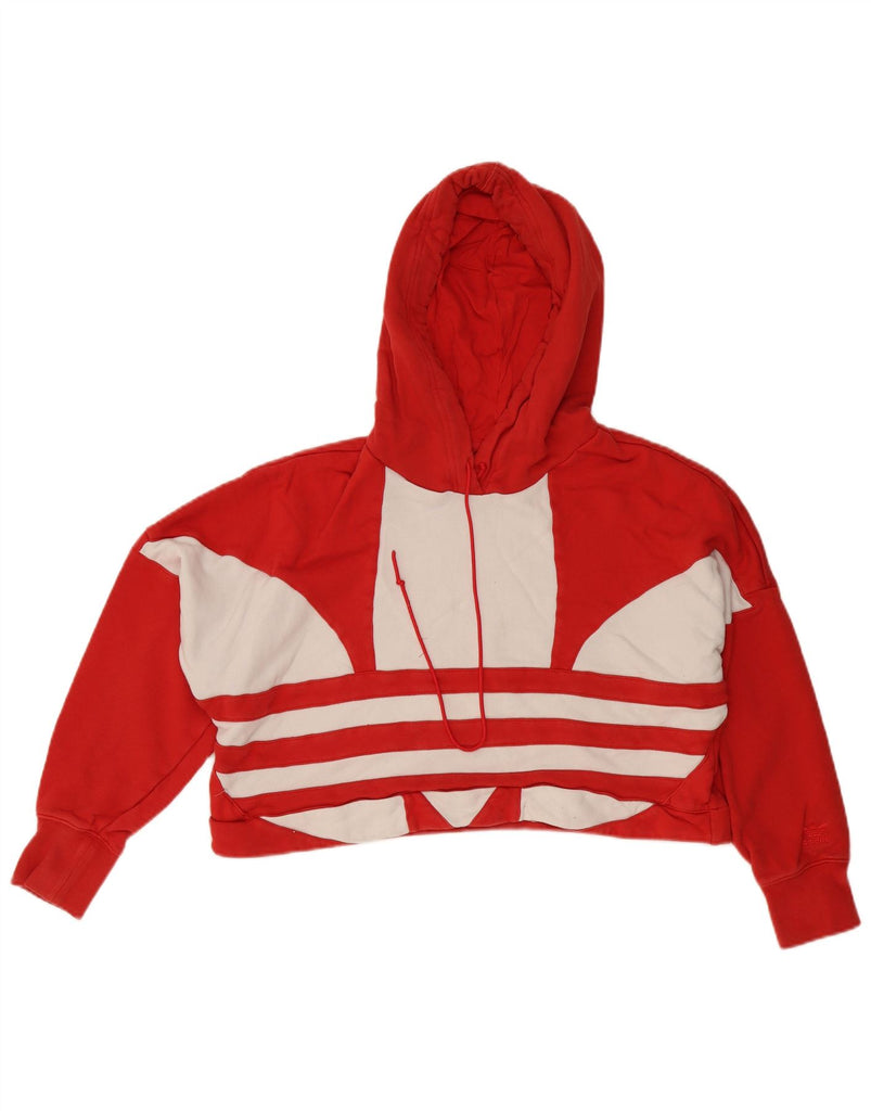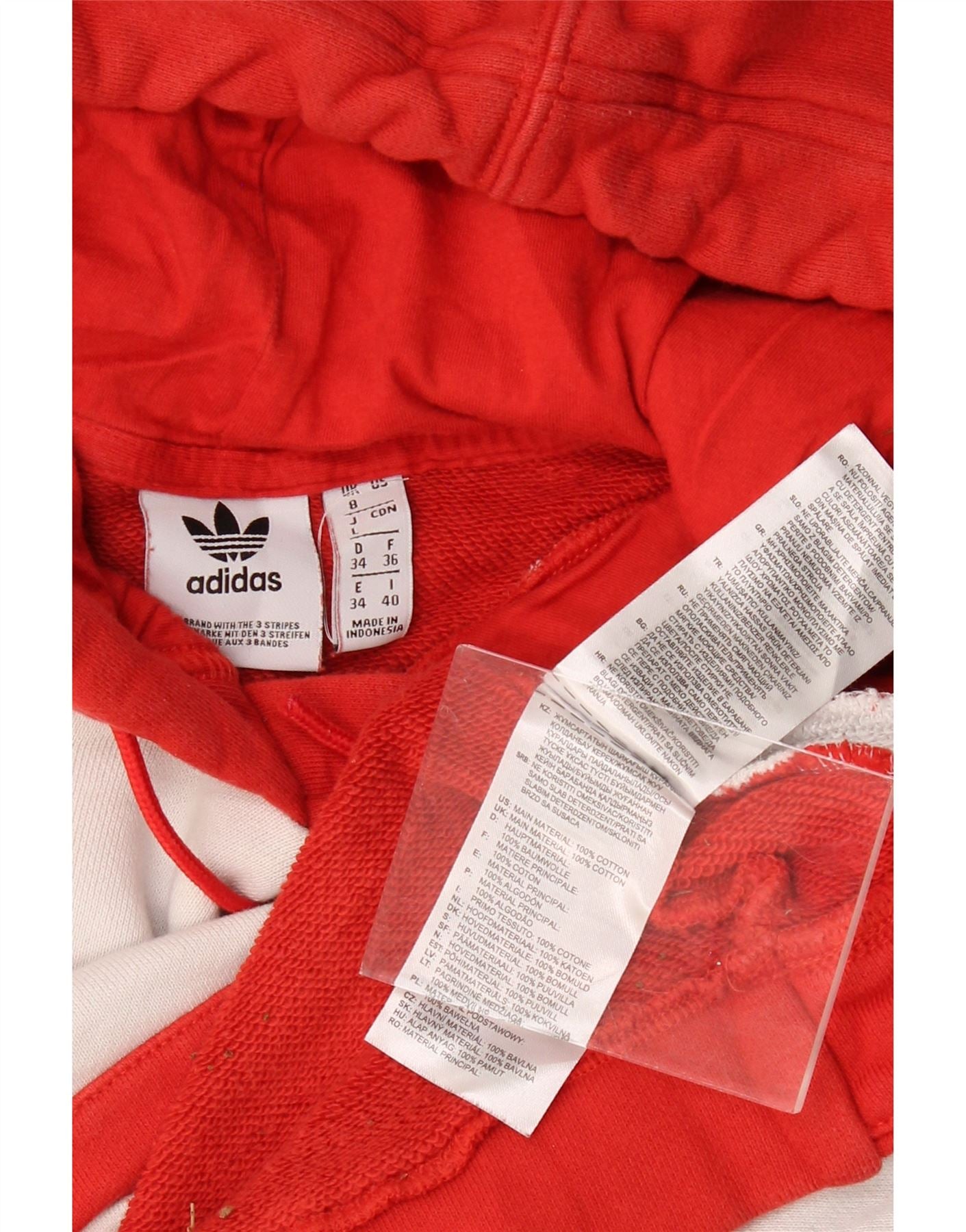 ADIDAS Womens Oversized Crop Graphic Hoodie Jumper UK 8 Small Red Cotton