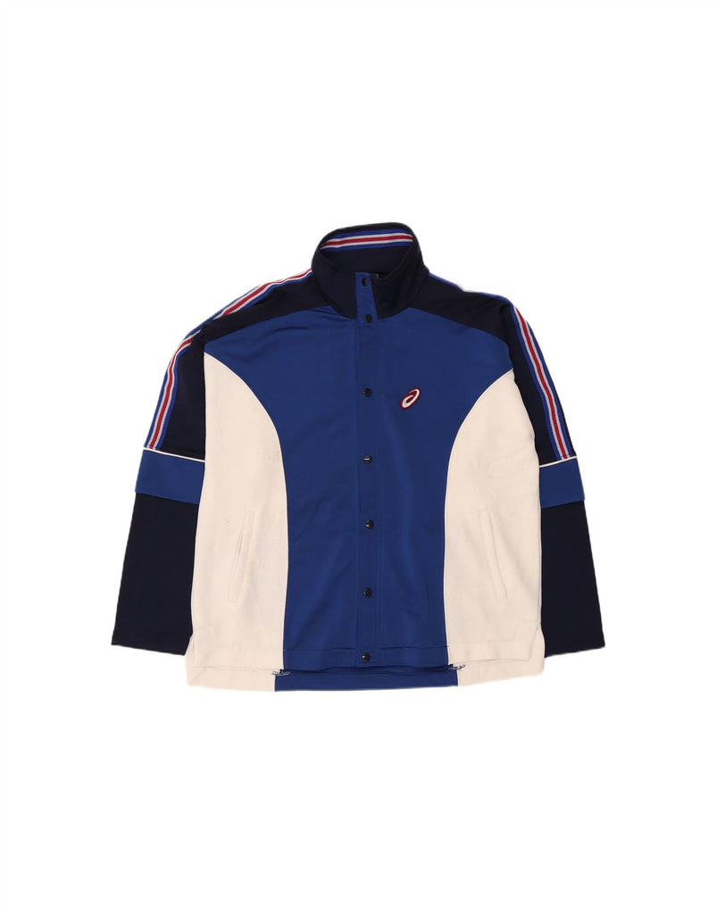 ASICS Mens Graphic Tracksuit Top Jacket Medium Navy Blue Colourblock