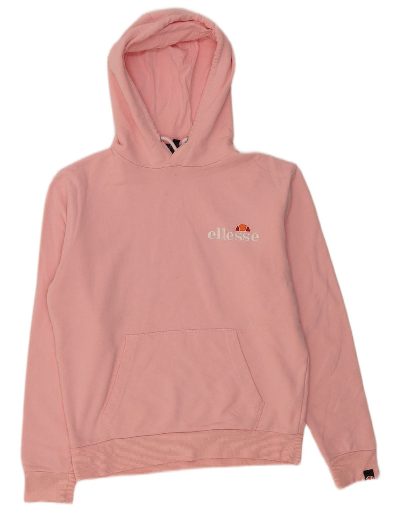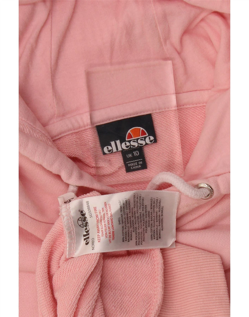 ELLESSE Womens Oversized Graphic Hoodie Jumper UK 10 Small Pink Cotton