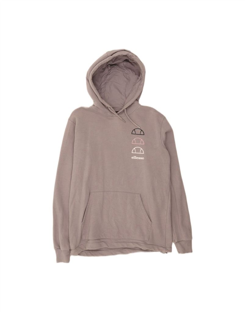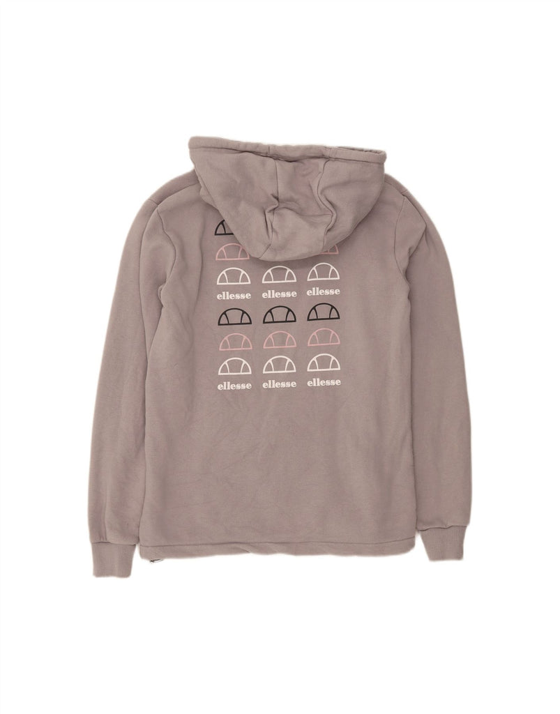 ELLESSE Womens Oversized Graphic Hoodie Jumper UK 8 Small Grey Cotton