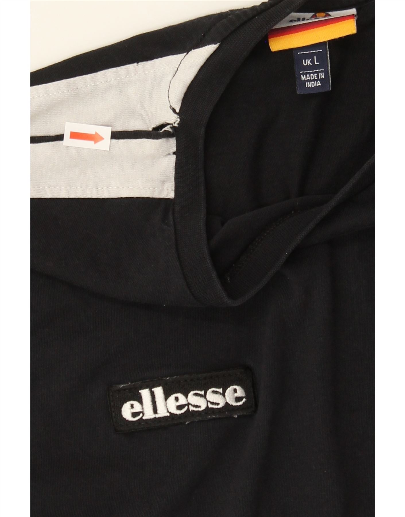 ELLESSE Womens T-Shirt Top UK 16 Large Black Colourblock Cotton