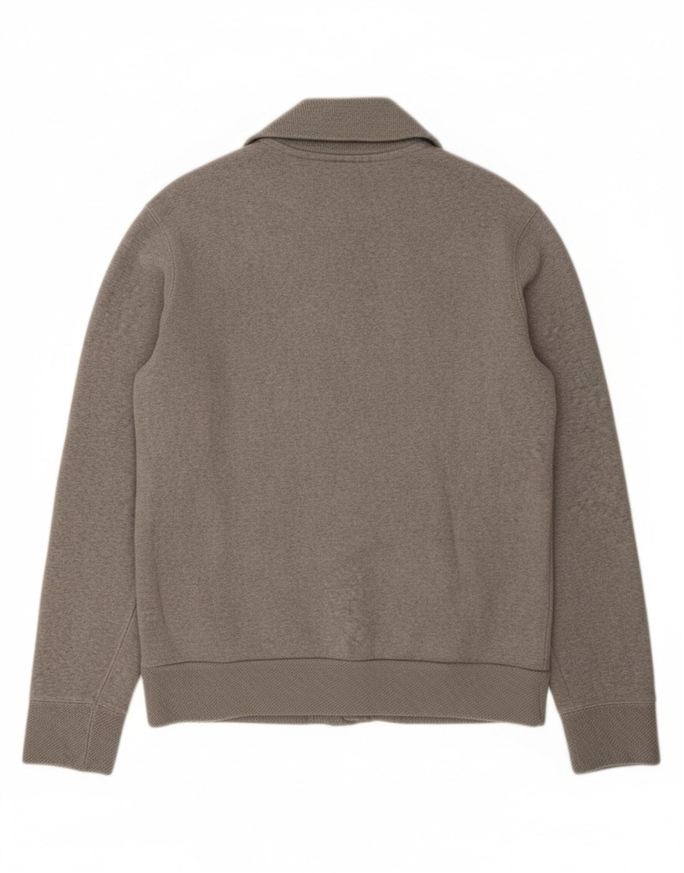 - AI Condition: Pre-owned | grade: Moderate | location: General fabric throughout the garment, especially visible on the ribbed collar and cuffs. | type: Visible wear