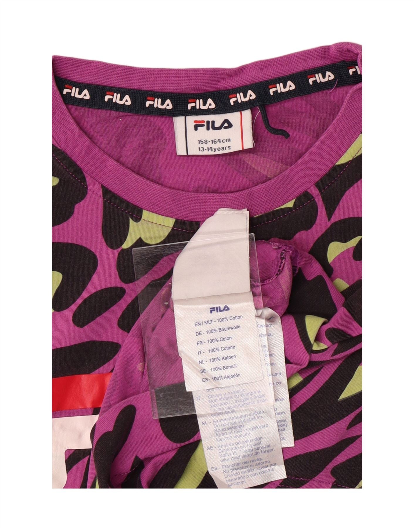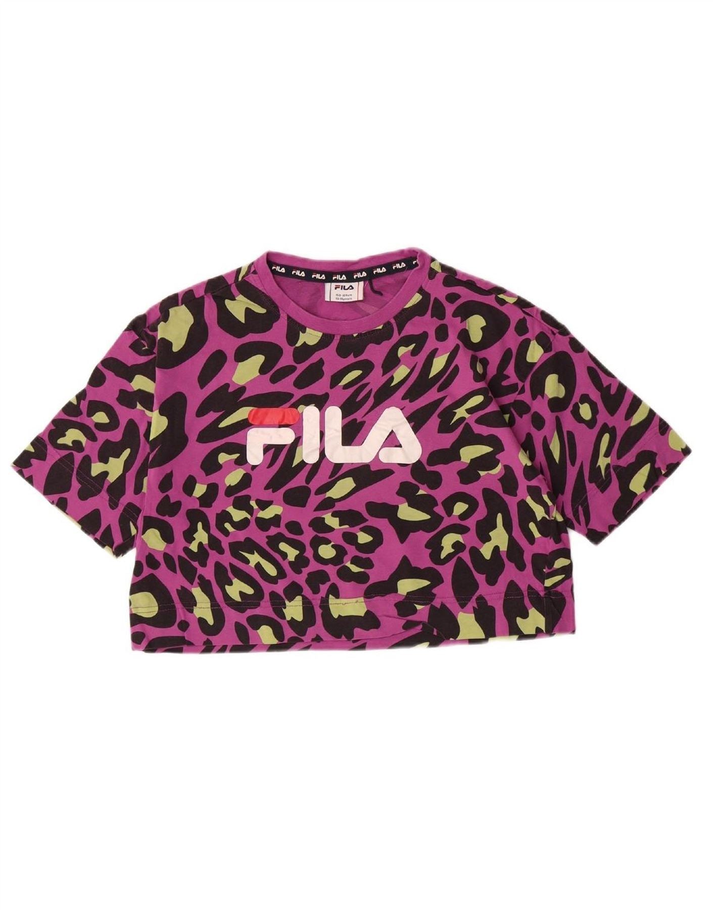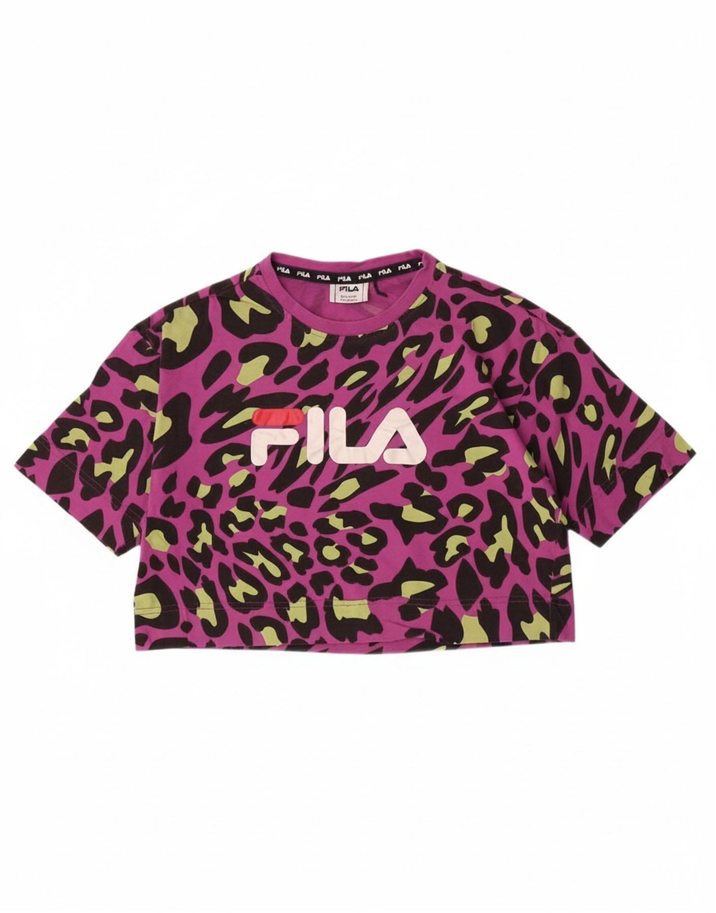 FILA Girls Crop Graphic T-Shirt Top 13-14 Years Purple Animal Print Cotton