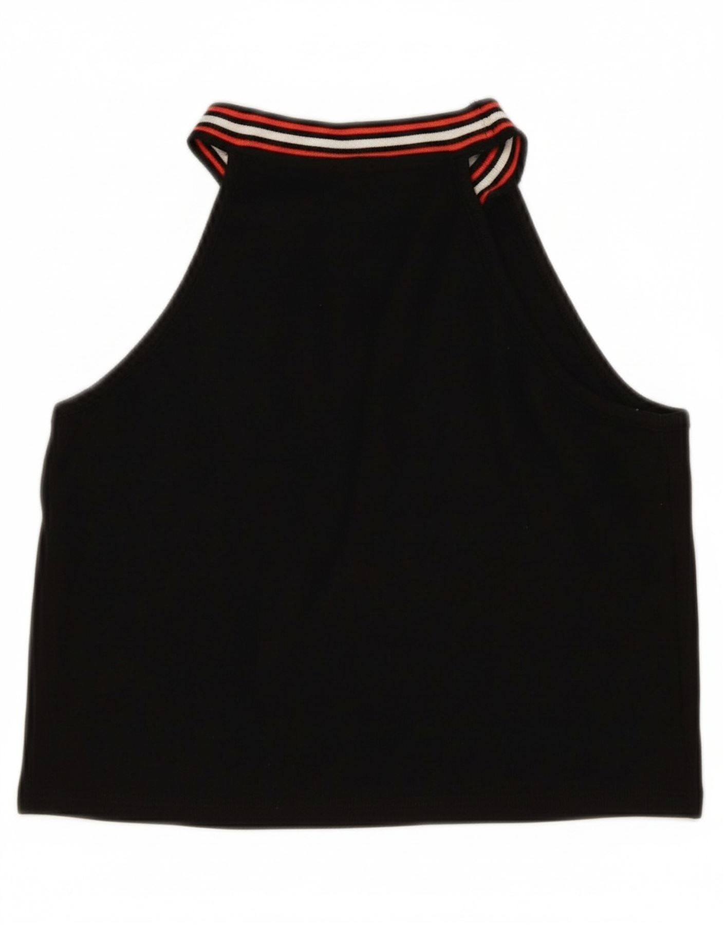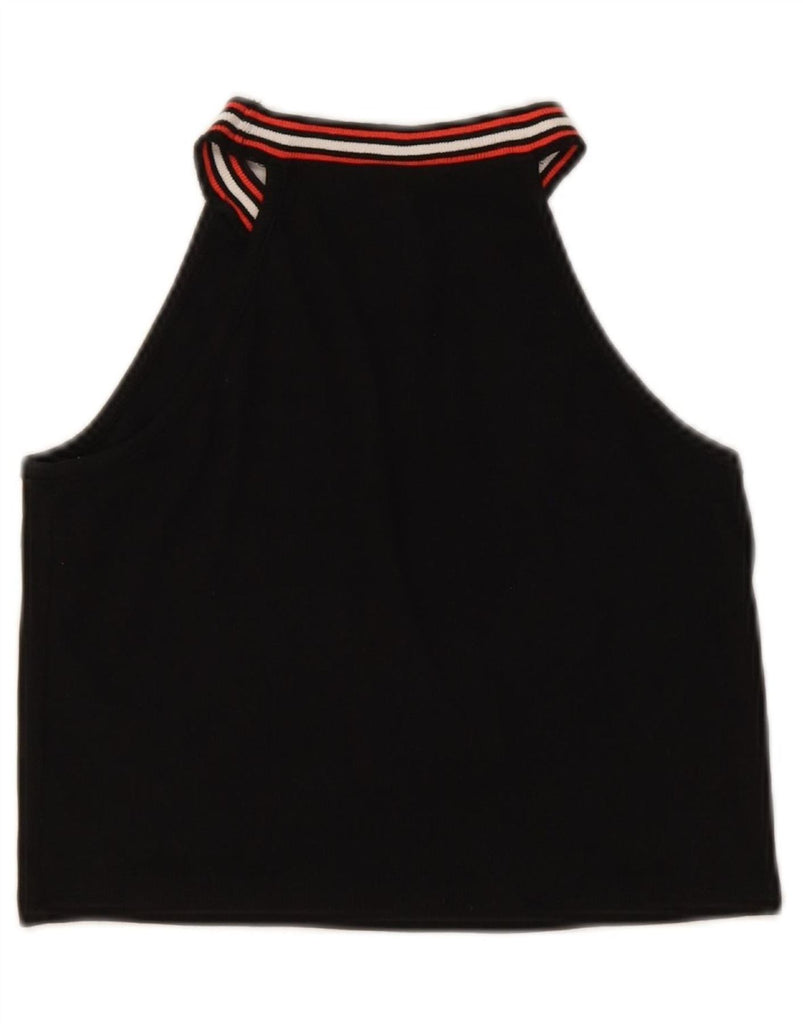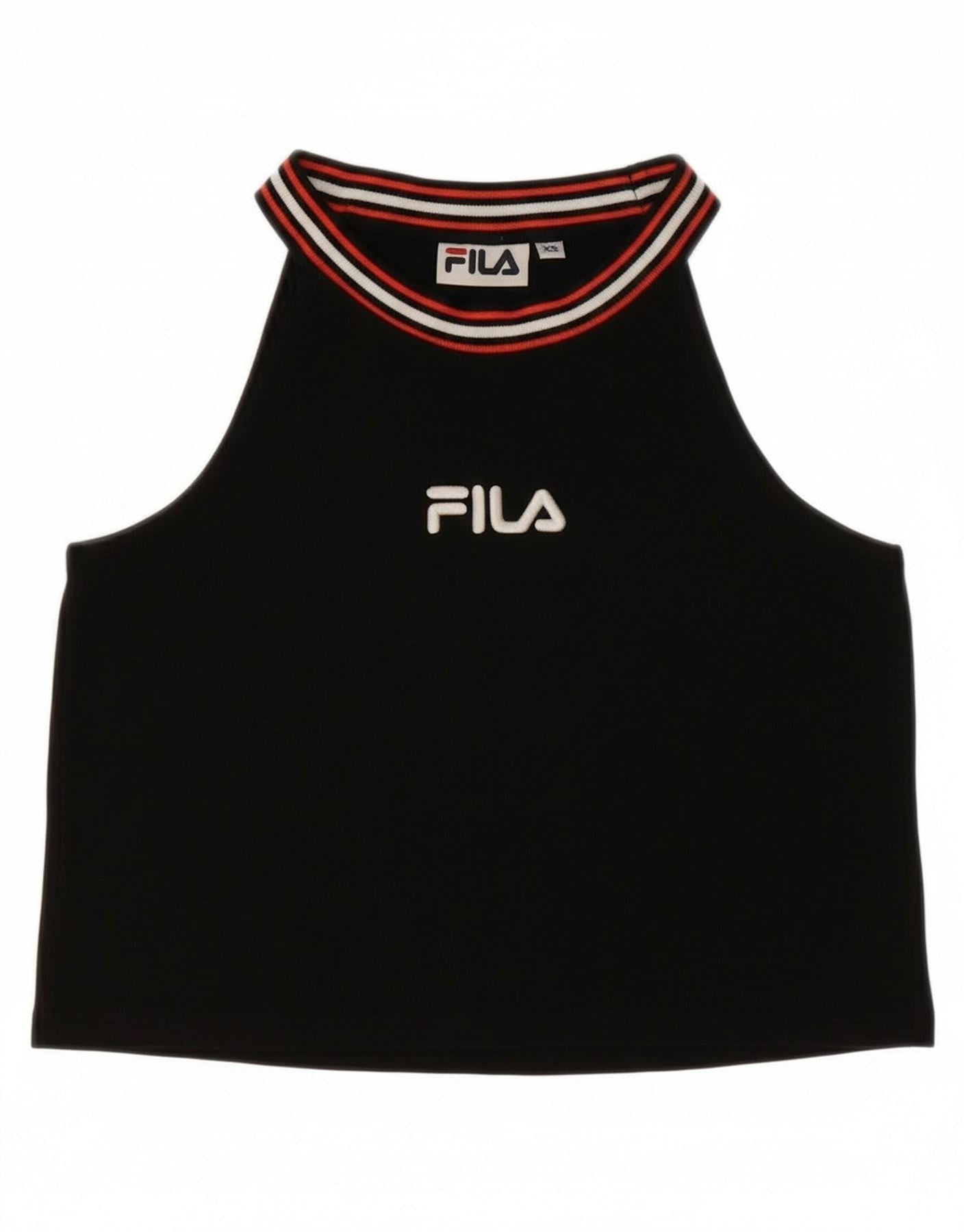 - AI Description: This Fila womens graphic T-shirt top is crafted from soft black jersey fabric. It features a stylish mock neck and a modern sleeveless cut. The crop length offers a contemporary silhouette. Designed for a slim fit, it provides a sleek profile. A bold logo accent adds a signature branded touch, completing this sporty design.