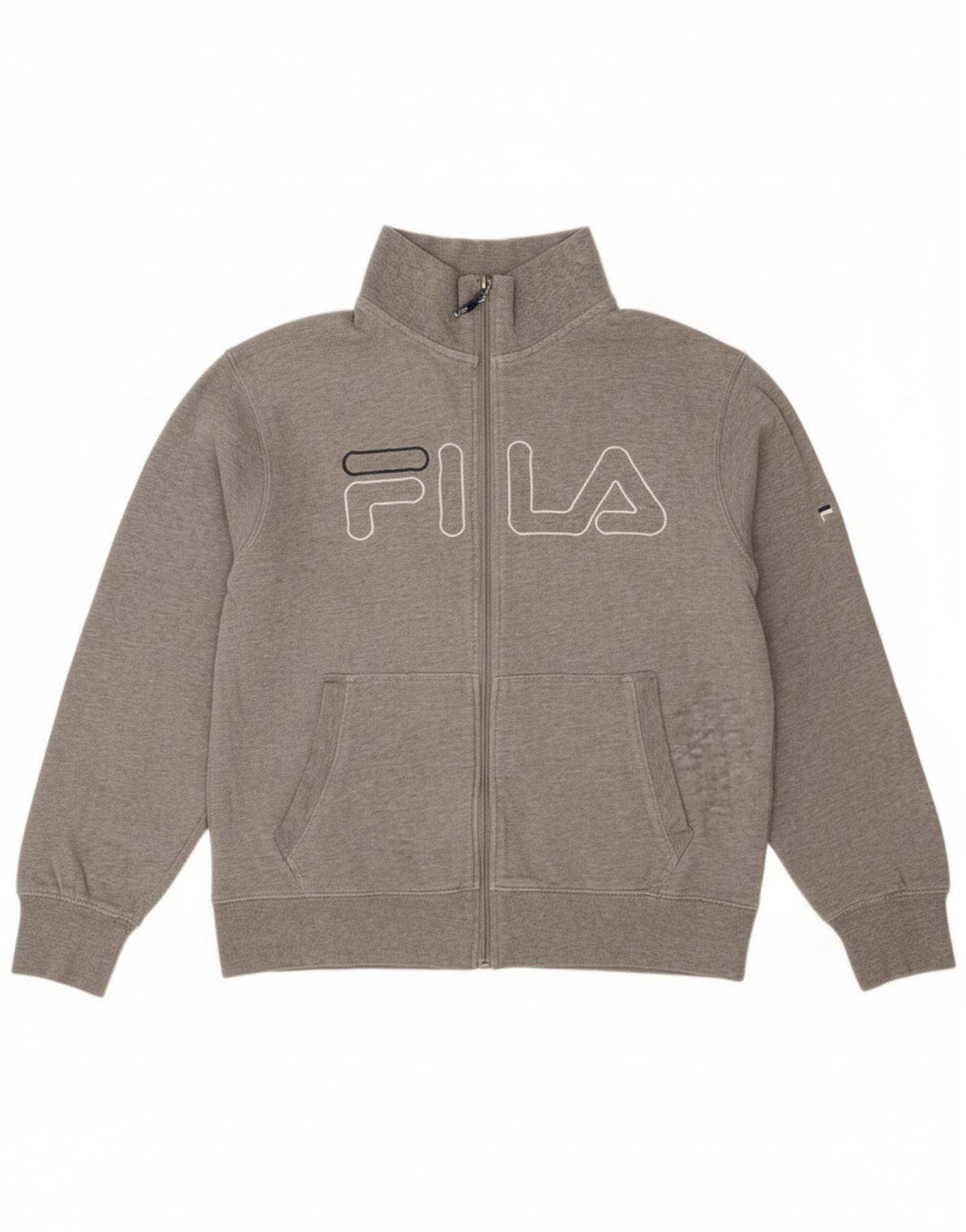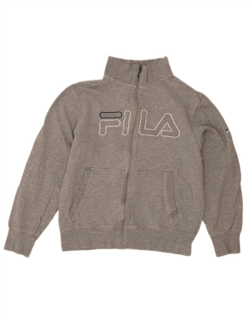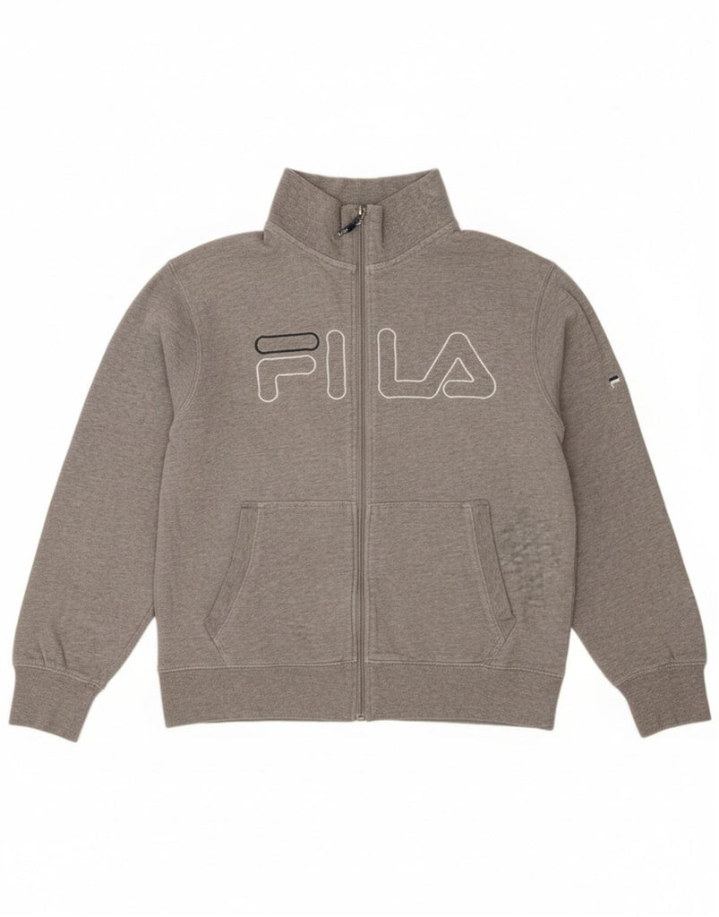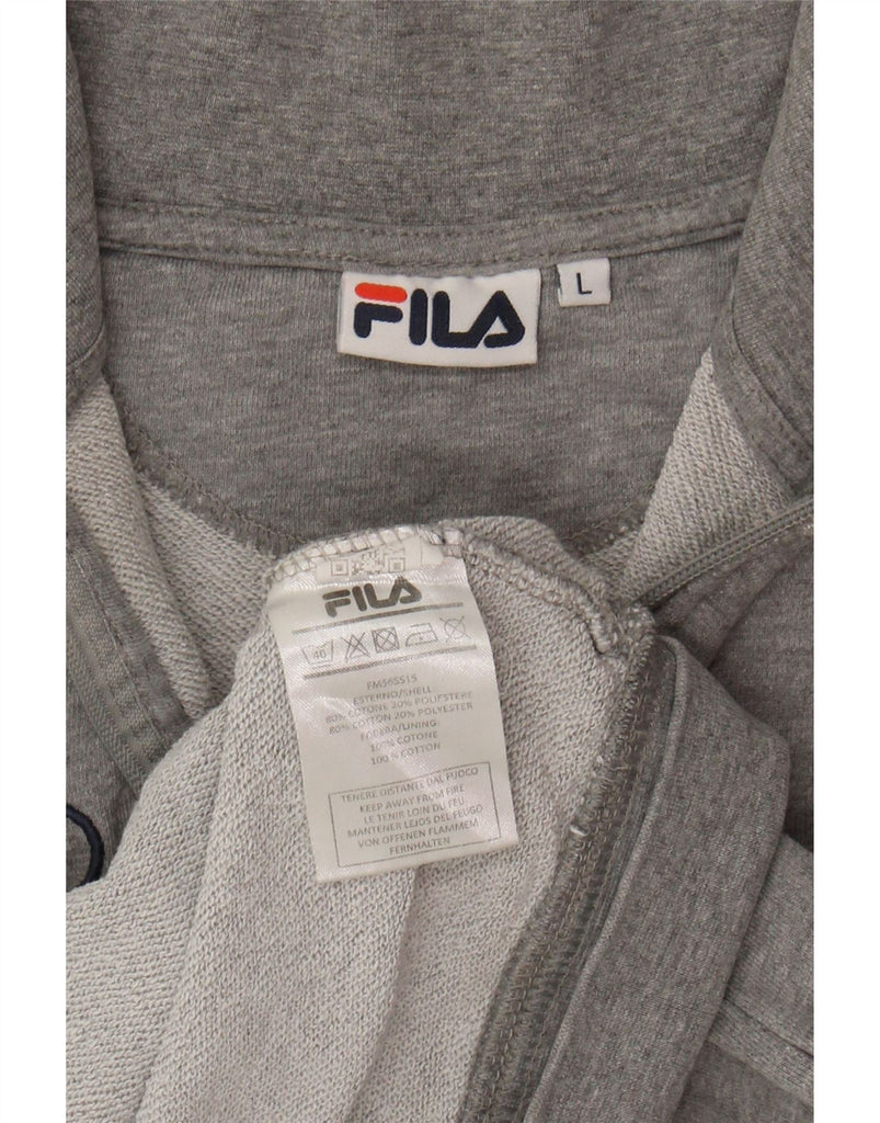 FILA Womens Graphic Tracksuit Top Jacket UK 16 Large Grey Cotton