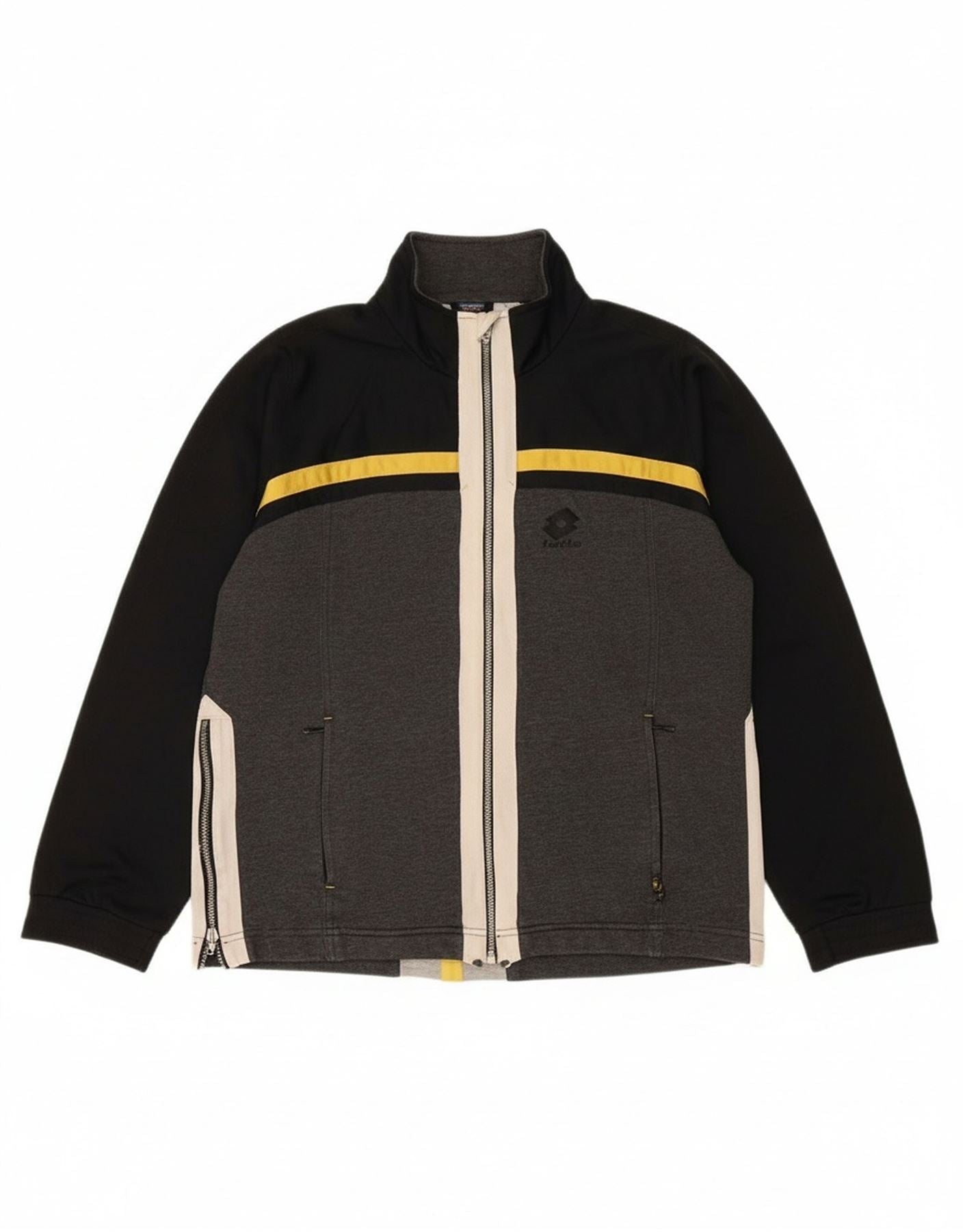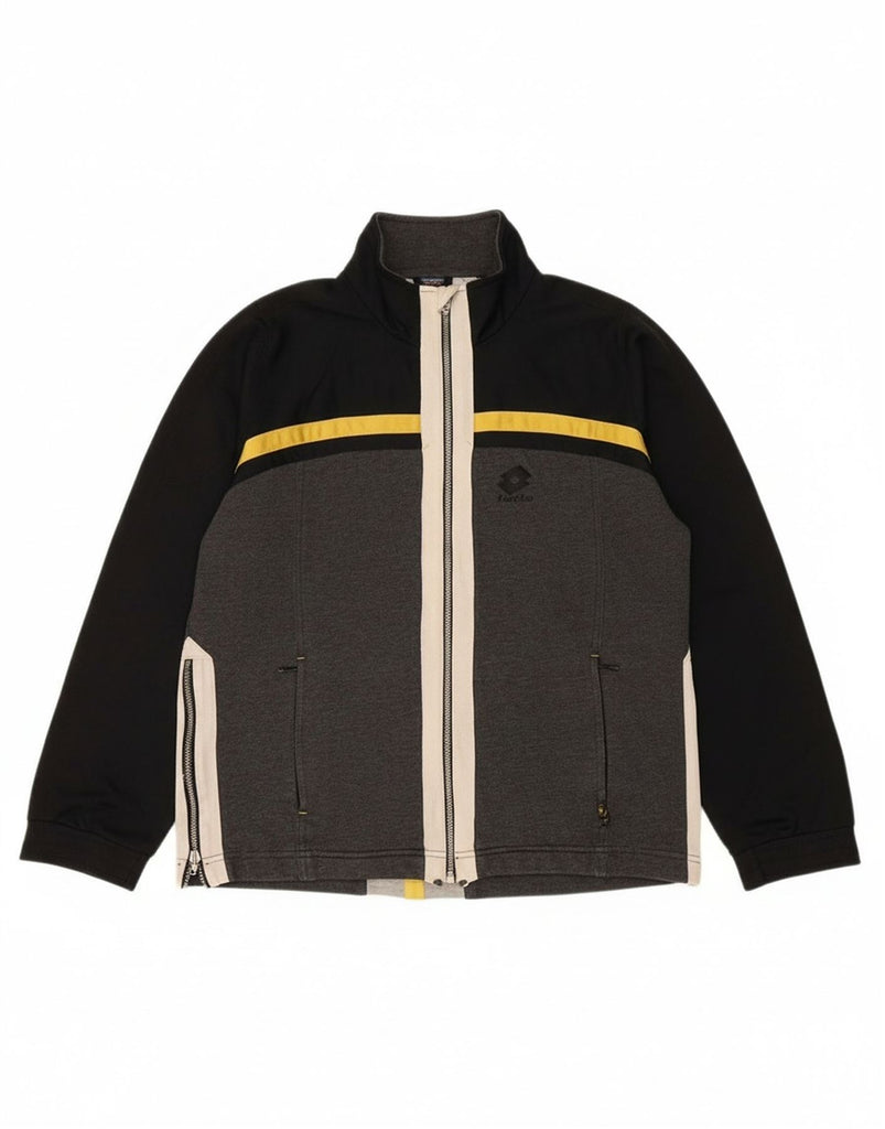 LOTTO Mens Loose Fit Tracksuit Top Jacket UK 36/38 Small Black Colourblock