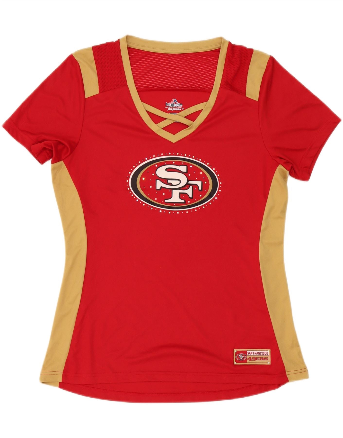 MAJESTIC Womens San Francisco Graphic T-Shirt Top UK 18 XL Red Colourblock