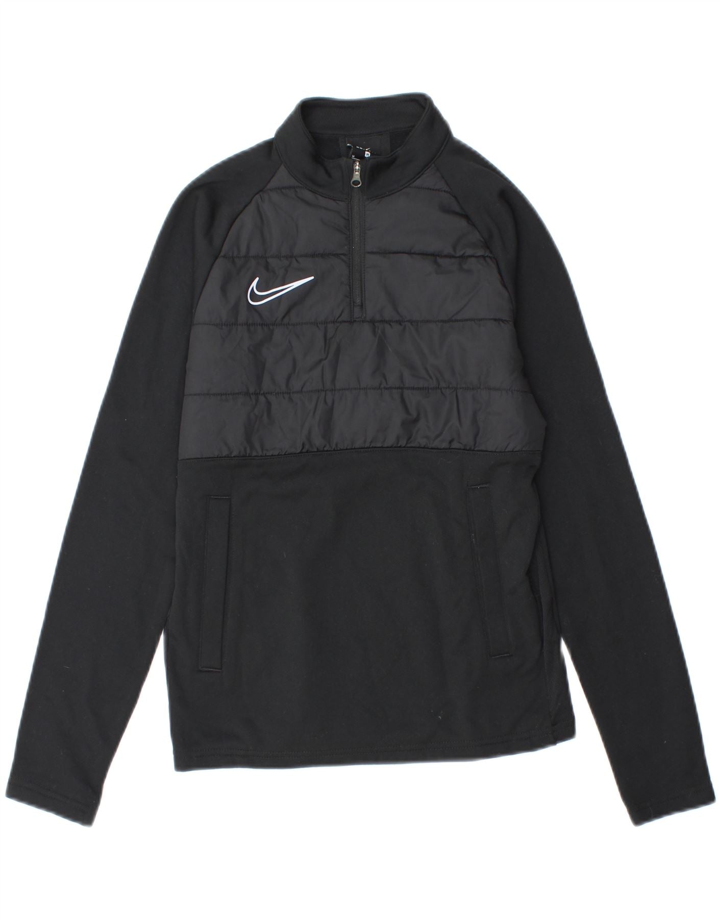 NIKE Boys Dri Fit Zip Neck Sweatshirt Jumper 10-11 Years Medium Black