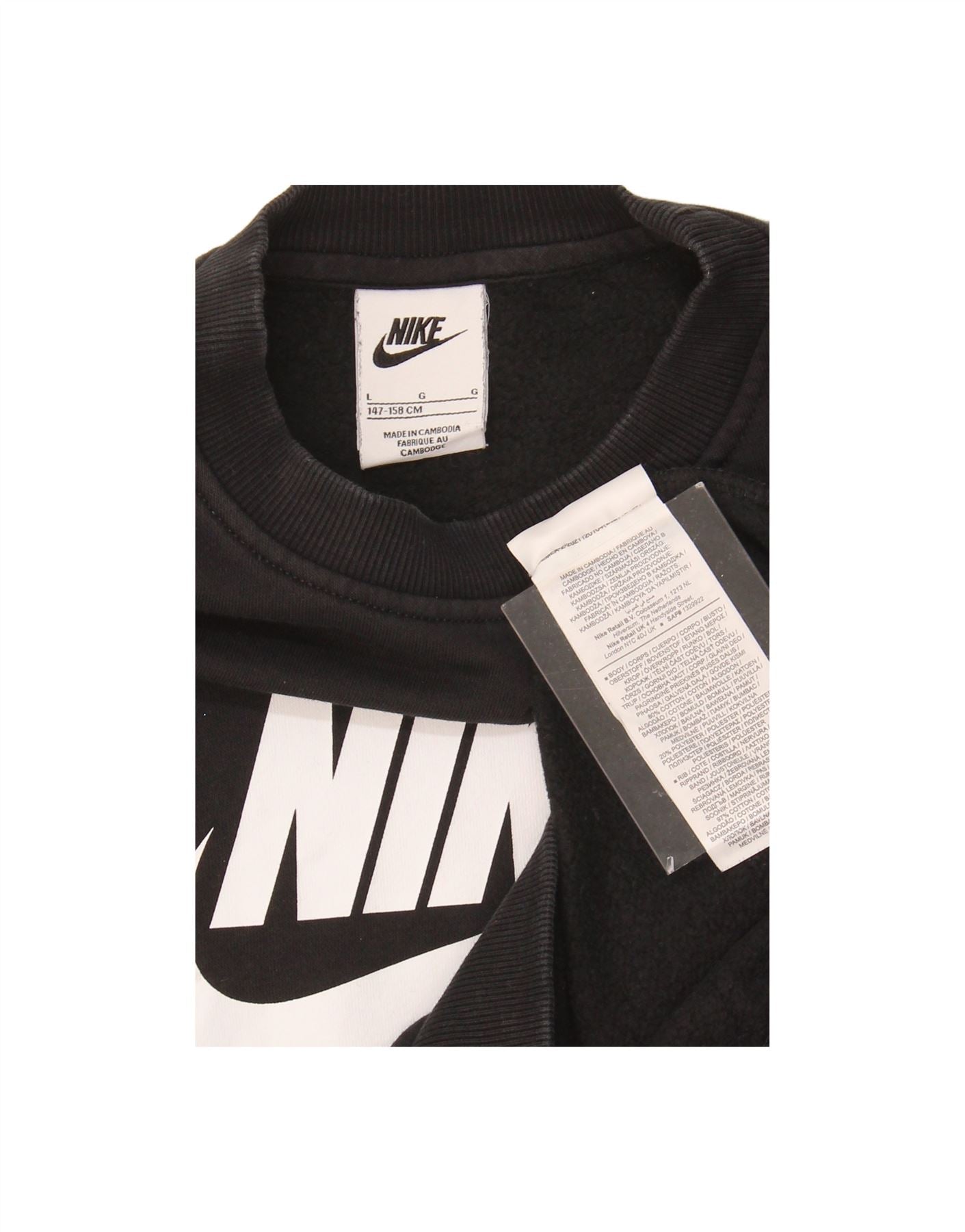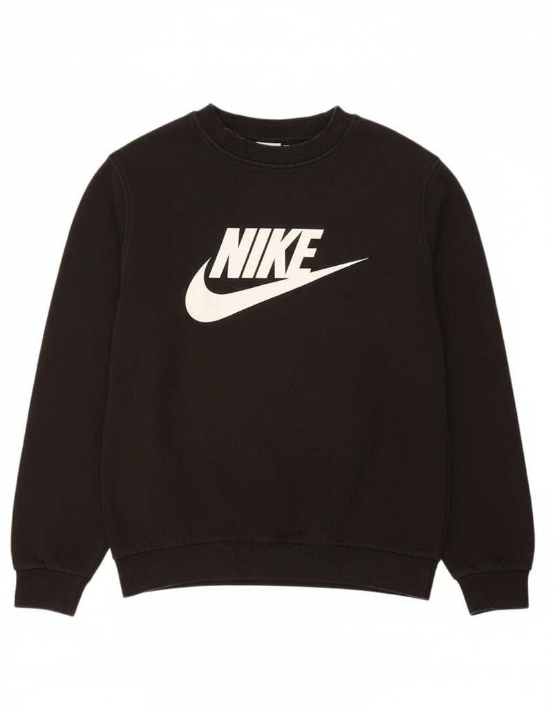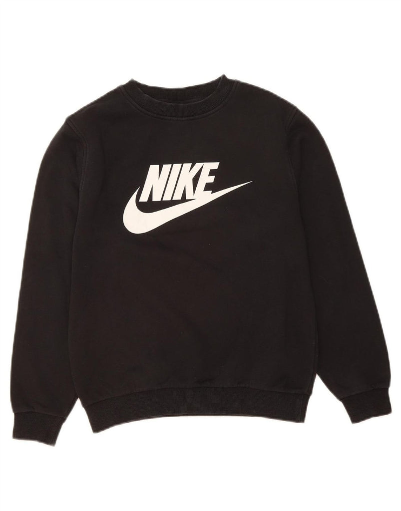 NIKE Boys Graphic Sweatshirt Jumper 12-13 Years Large Black Cotton