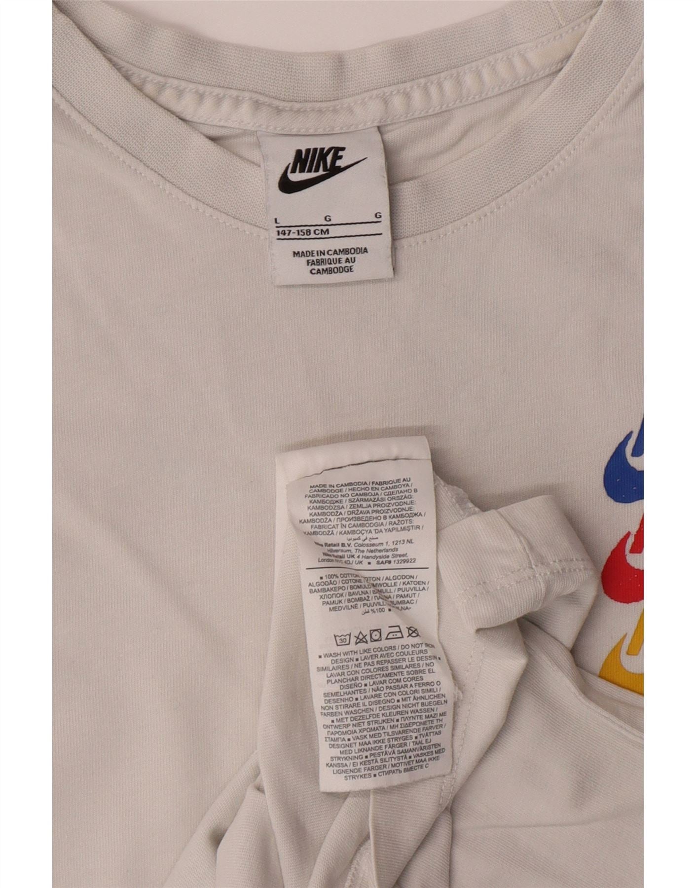 NIKE Boys Graphic T-Shirt Top 12-13 Years Large Off White Cotton