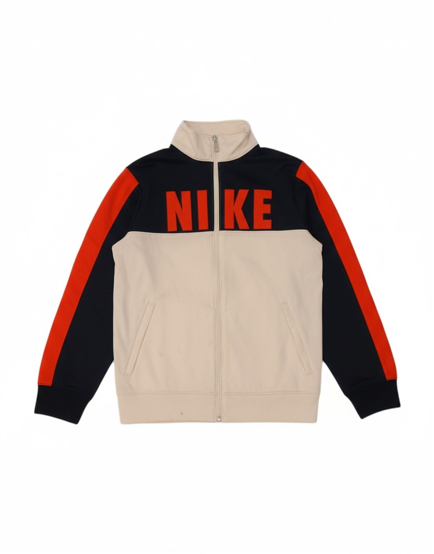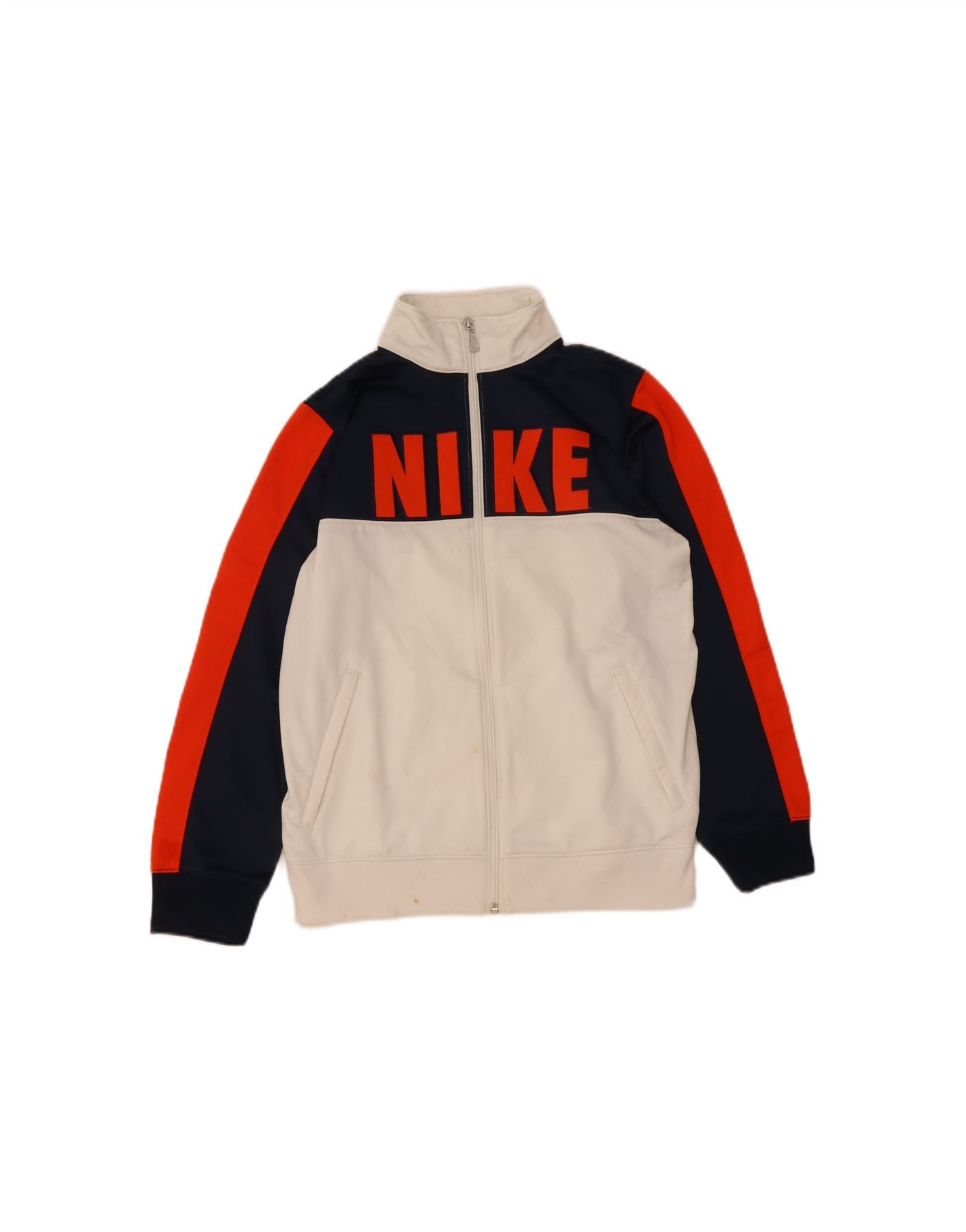 NIKE Boys Graphic Tracksuit Top Jacket 12-13 Years Large White Colourblock