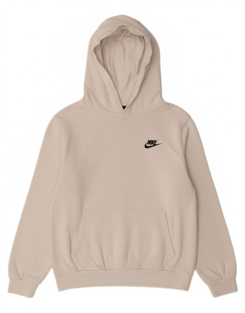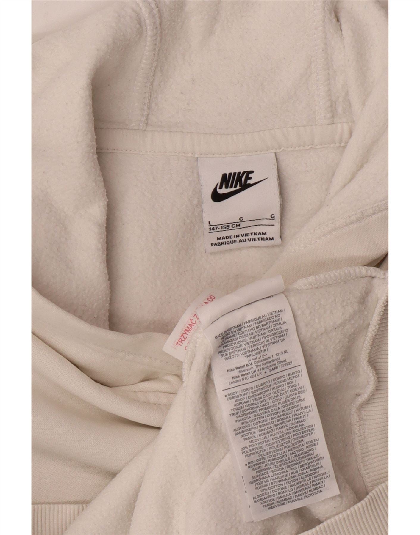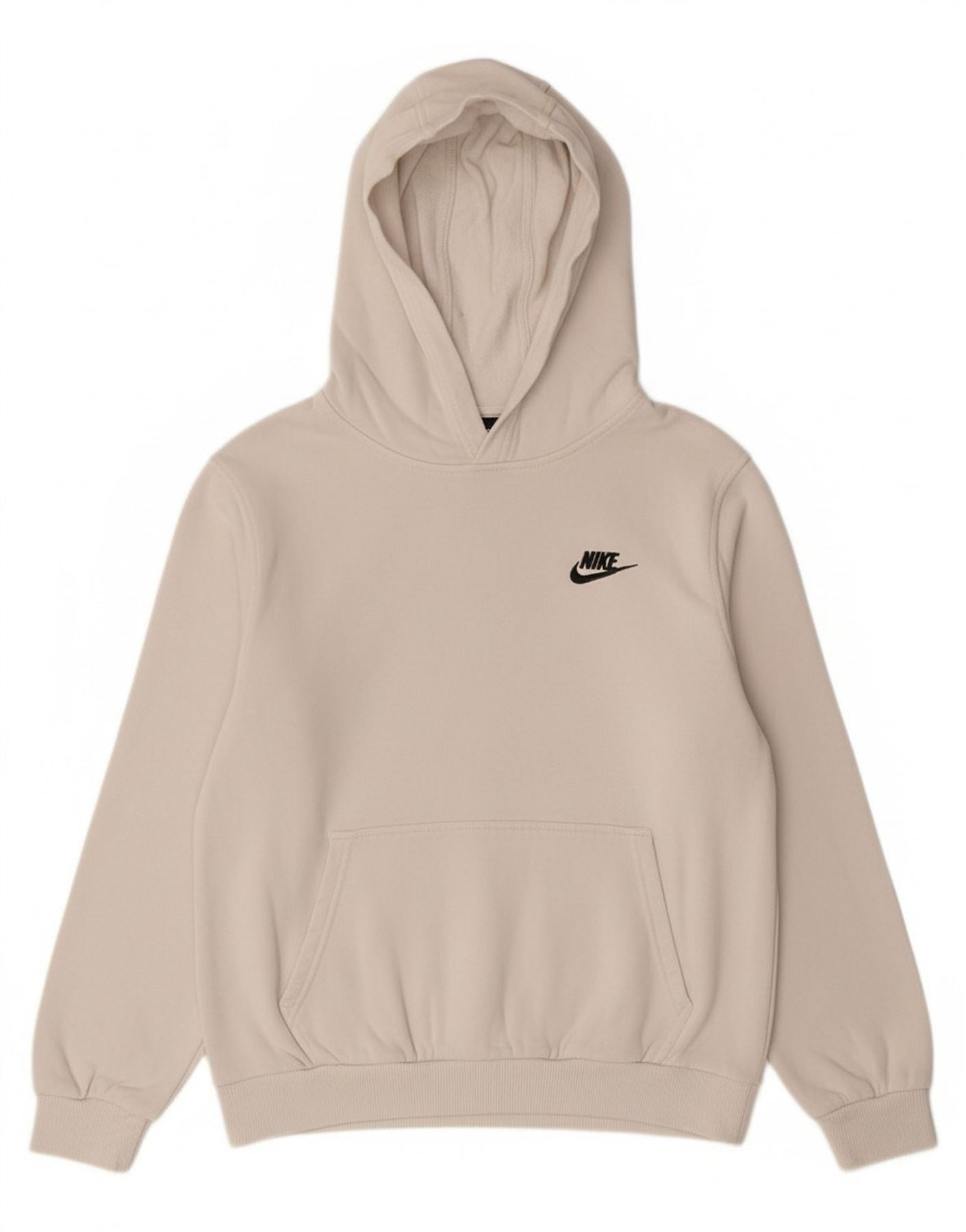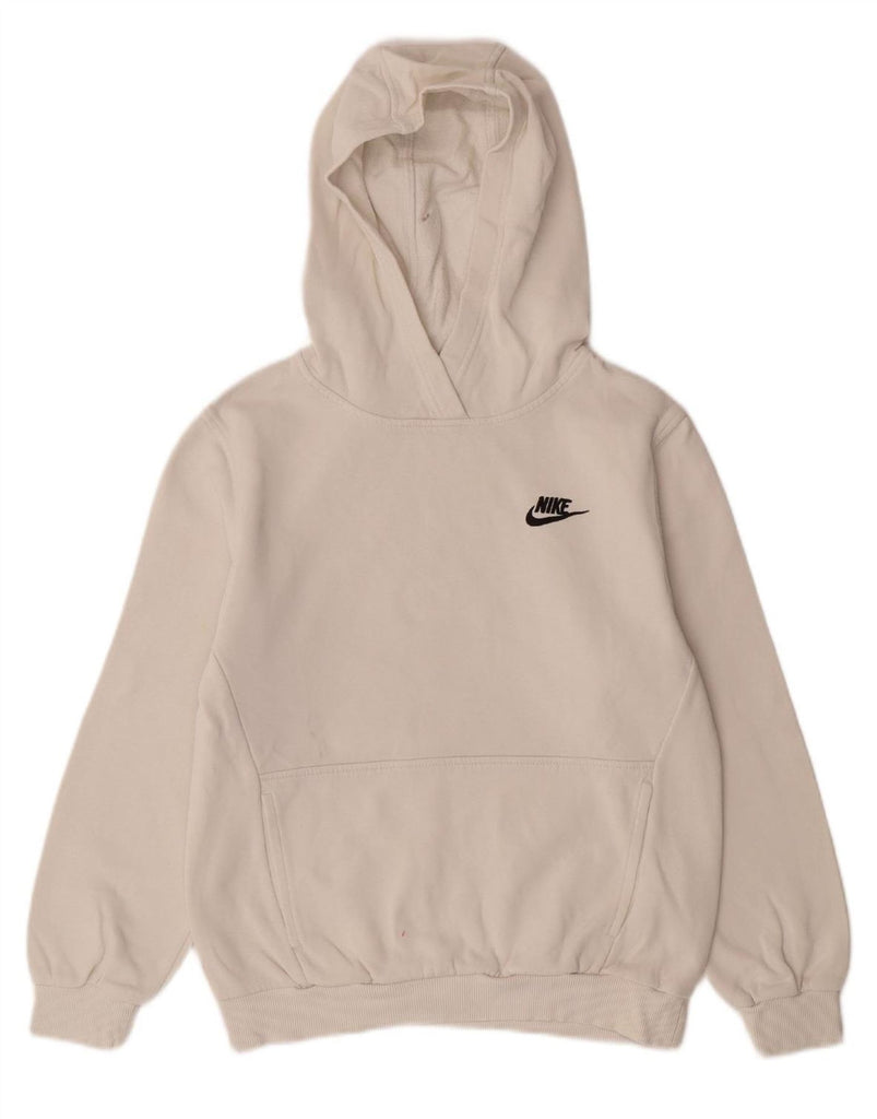 NIKE Boys Hoodie Jumper 12-13 Years Large Off White Cotton