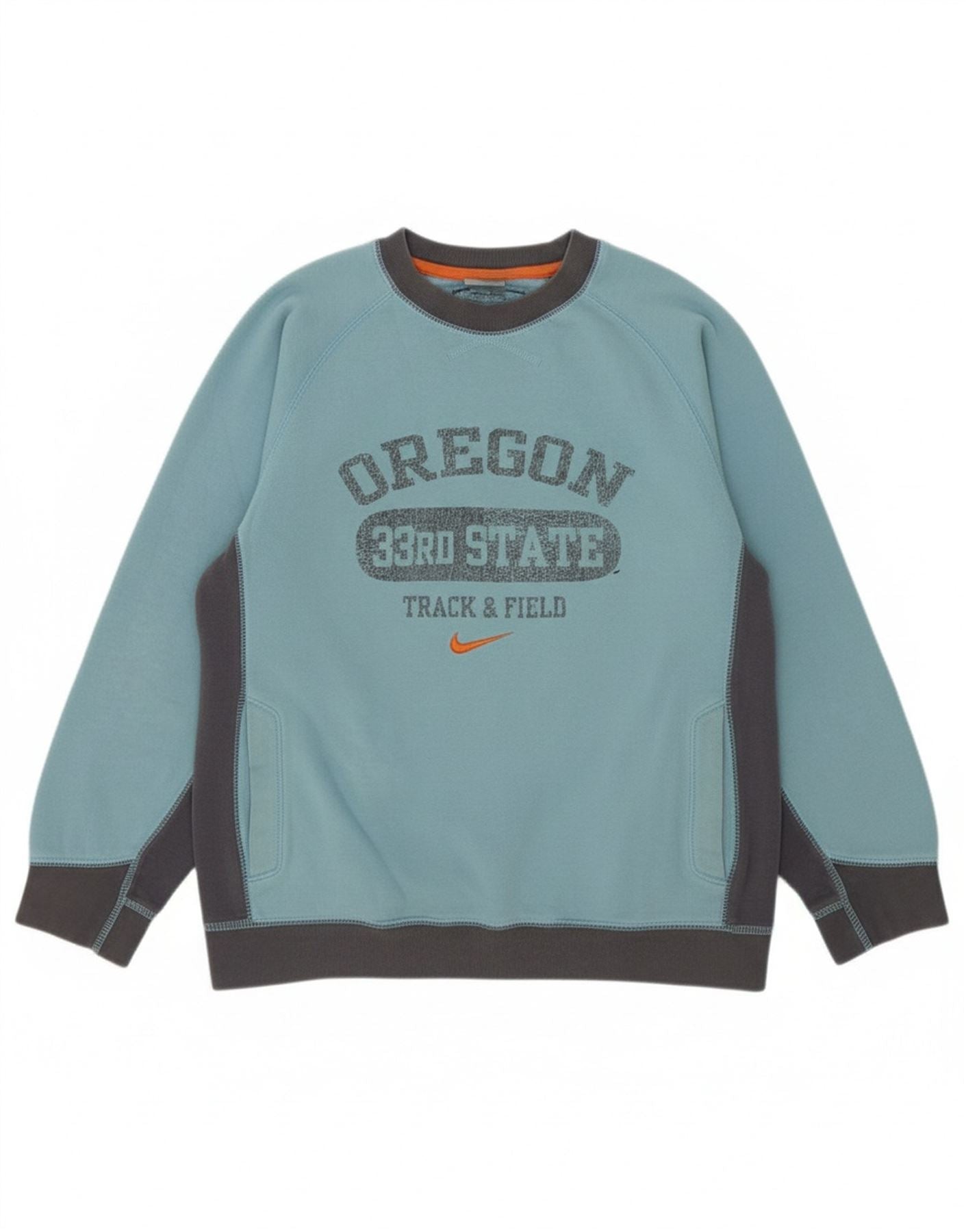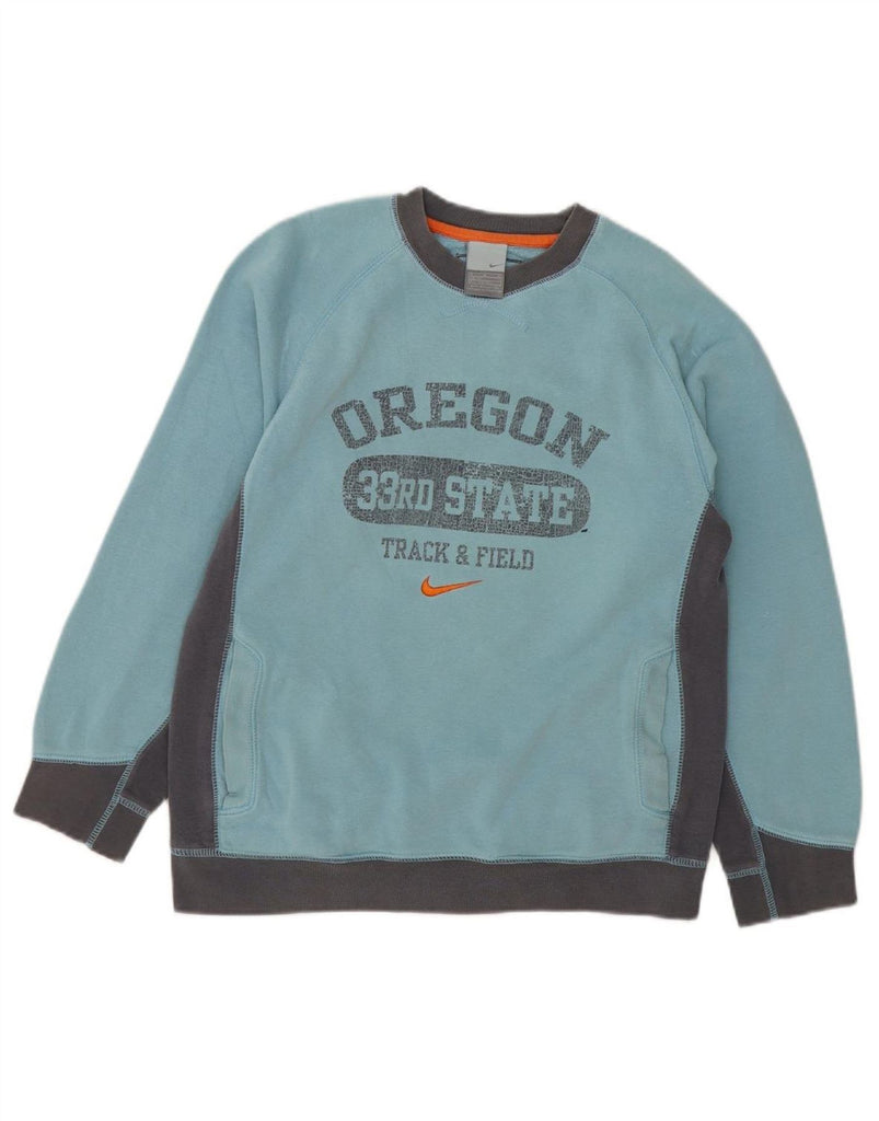 NIKE Boys Oregon Graphic Sweatshirt Jumper 11-12 Years Blue Colourblock