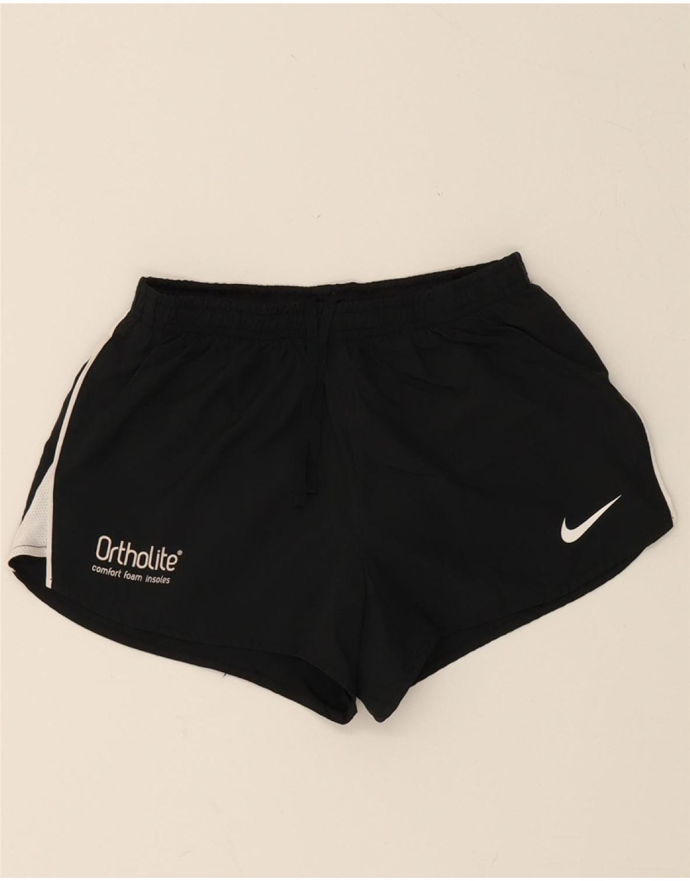 NIKE Girls Dri Fit Graphic Sport Shorts 12-13 Years Large Black Polyester