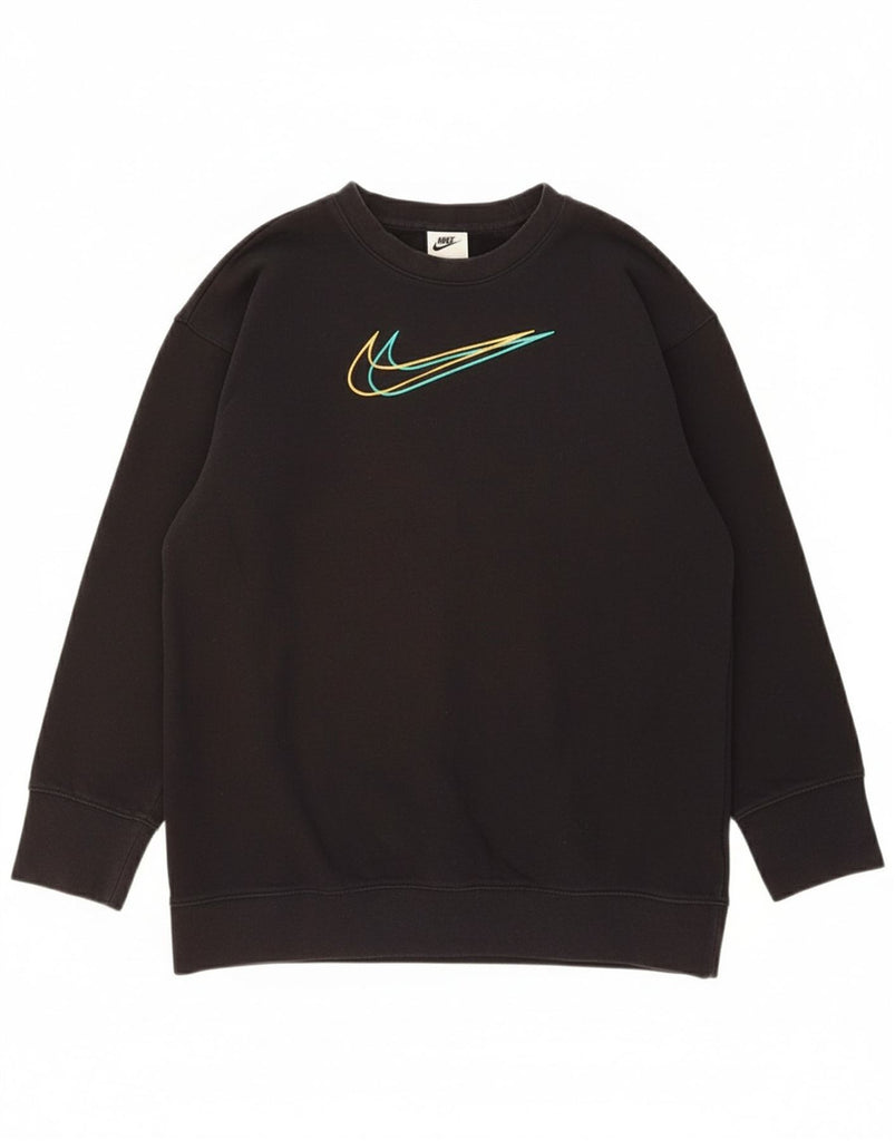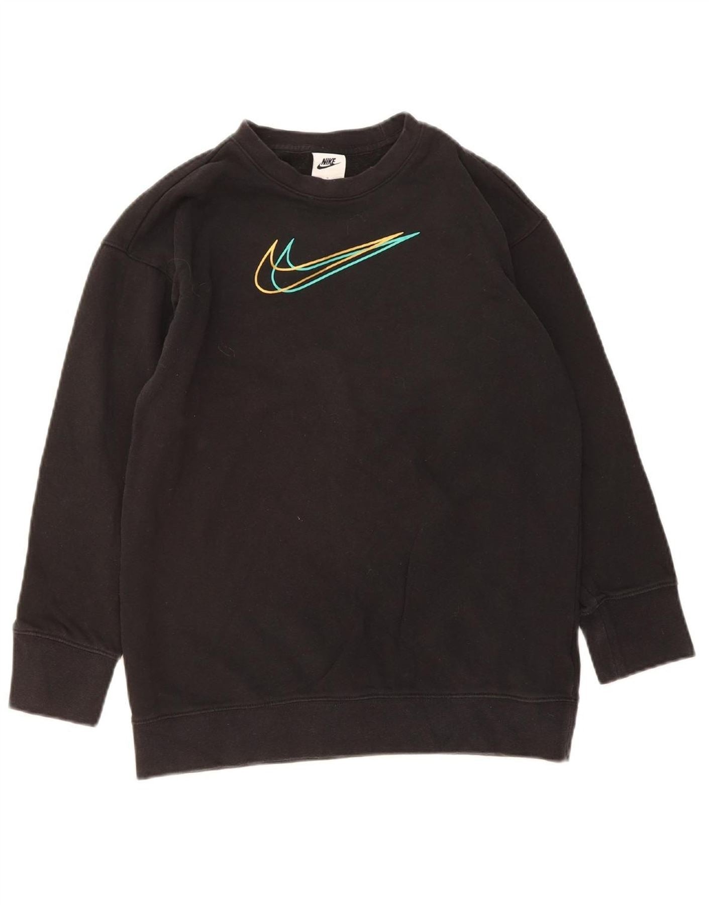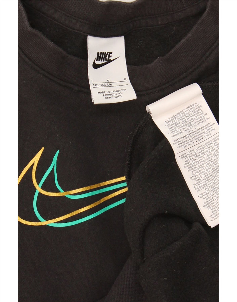 NIKE Girls Graphic Sweatshirt Jumper 12-13 Years Large Black Cotton