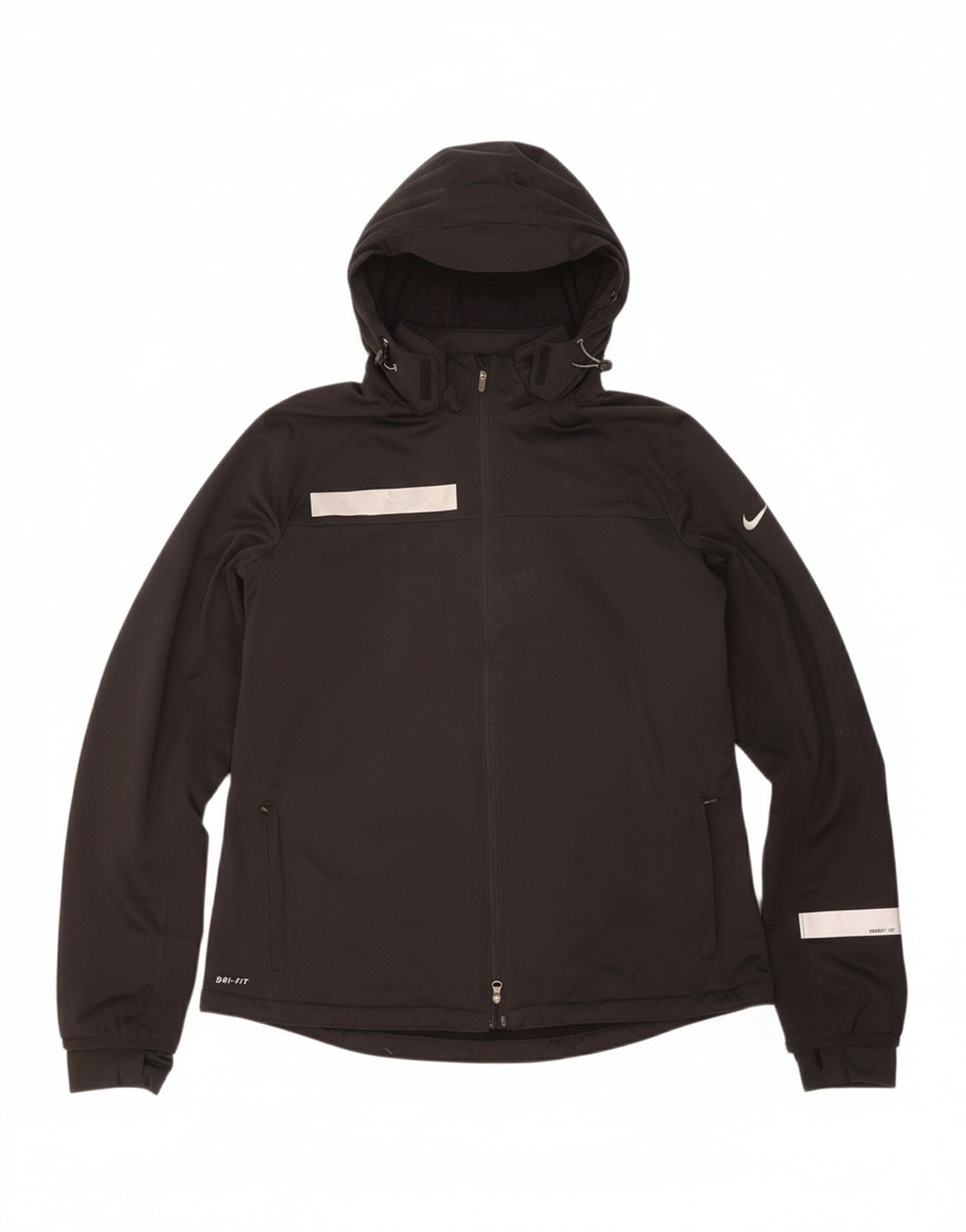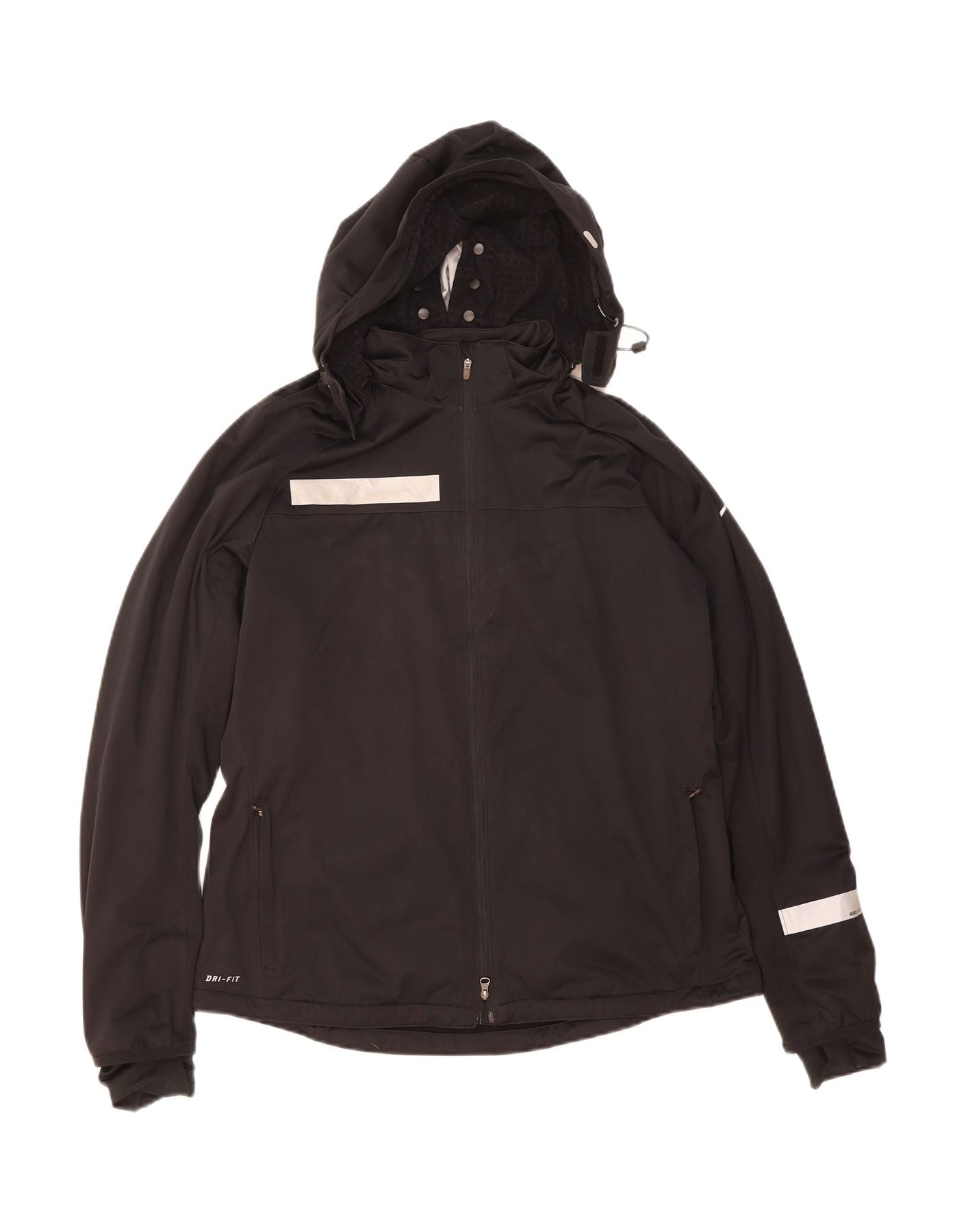 NIKE Mens Hooded Rain Jacket UK 40 Large Black Polyester Sports