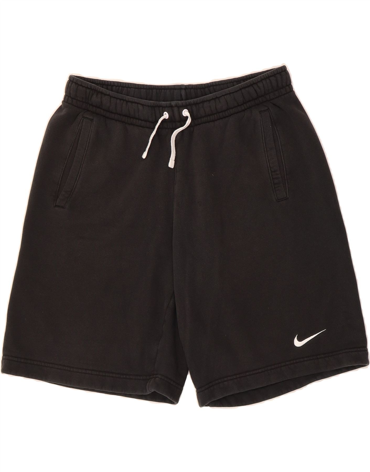 - AI Description: This pre-owned Nike sports shirt is in excellent condition, showing minor visible wear and slight overall discolouration. Crafted from a comfortable cotton-polyester fleece blend, this black shirt features a regular fit, pockets, and an elastic waistband. The drawstring closure ensures a secure fit. Accented with the iconic Nike logo, it also features button, studded, and embroidered details. Label size G. Washing instructions not specified. Made in China.