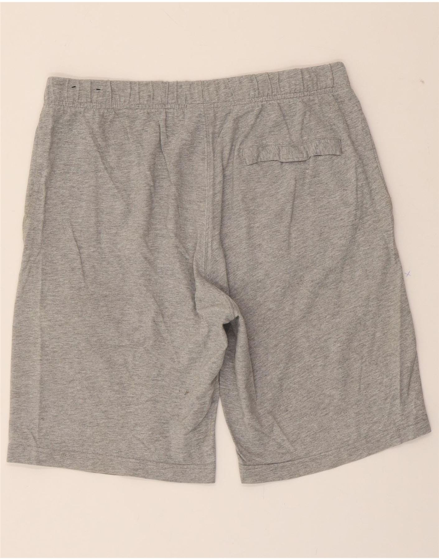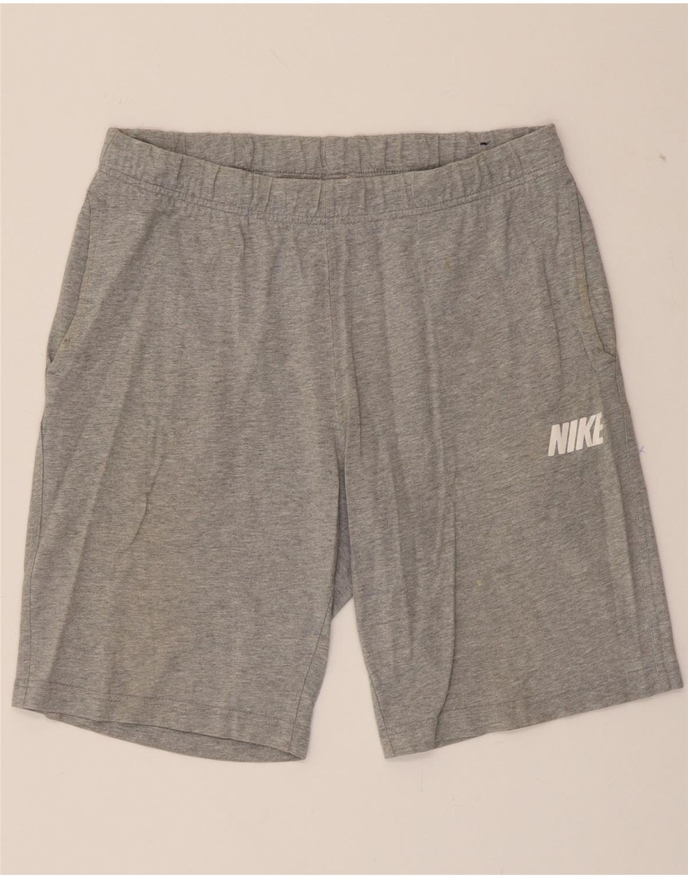 - AI Description: These Nike sports shorts are a comfortable and practical choice for your activewear collection. In a versatile grey jersey fabric, they feature a regular fit and an elasticated drawstring waist for an adjustable fit. The shorts also boast a logo accent and convenient pockets. Pre-owned and in excellent condition, these size medium shorts are ideal for sports or casual wear.