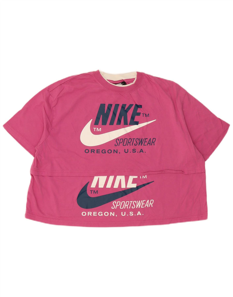 NIKE Womens Crop Oversized Graphic T-Shirt Top UK 16 Large Pink Sports