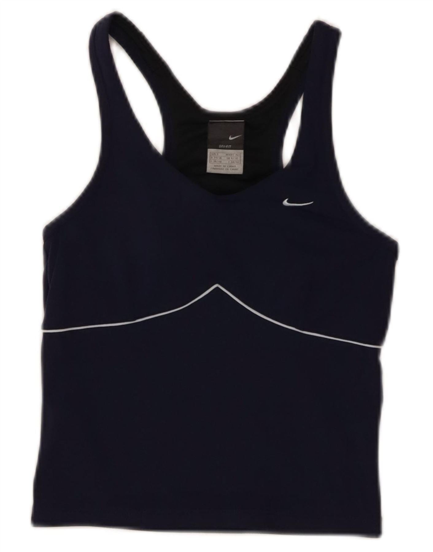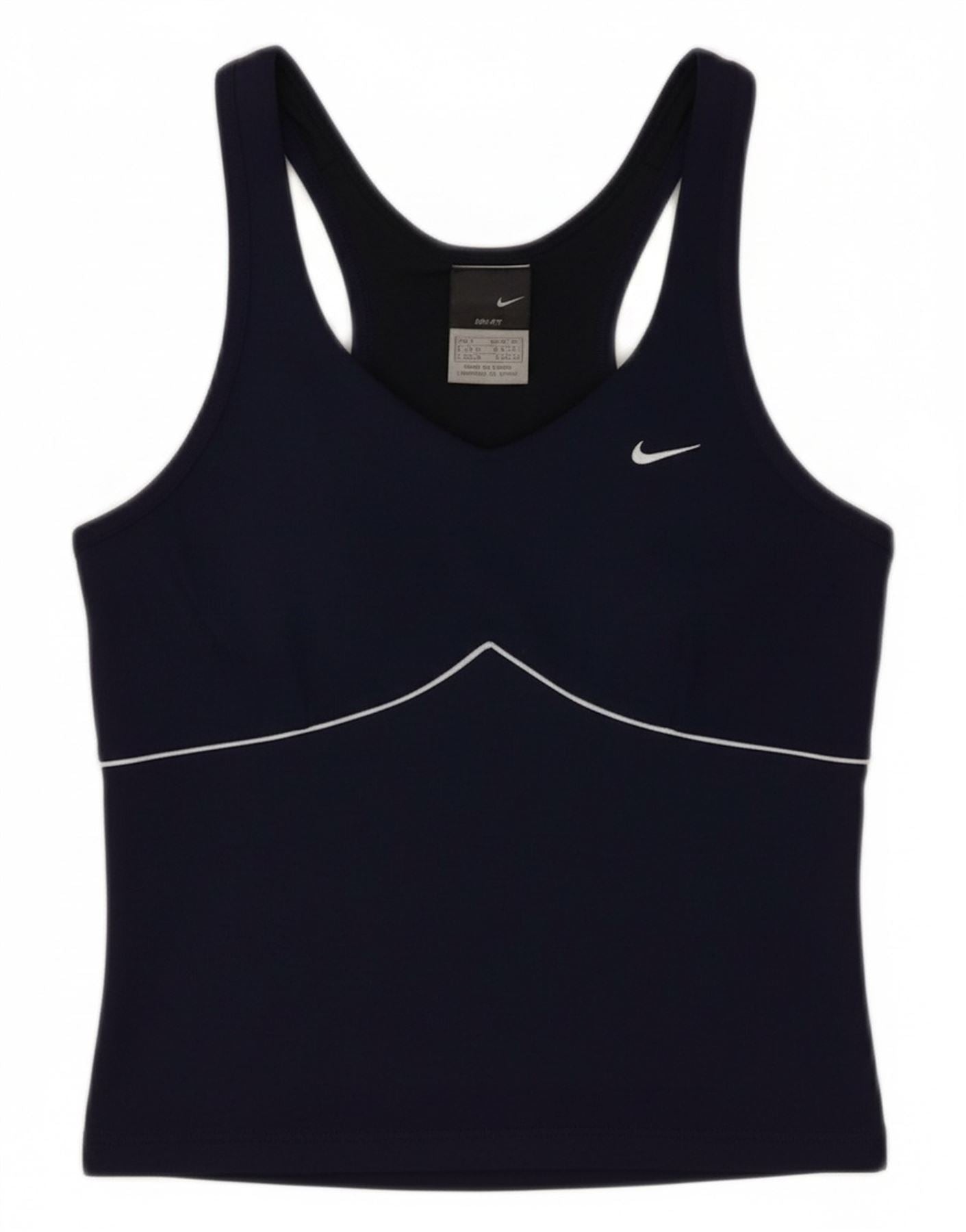 NIKE Womens Dri Fit Vest Top UK 8/10 Small Navy Blue Nylon