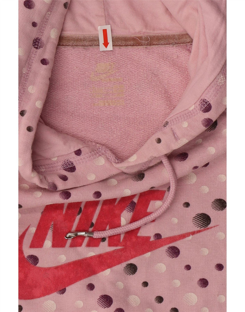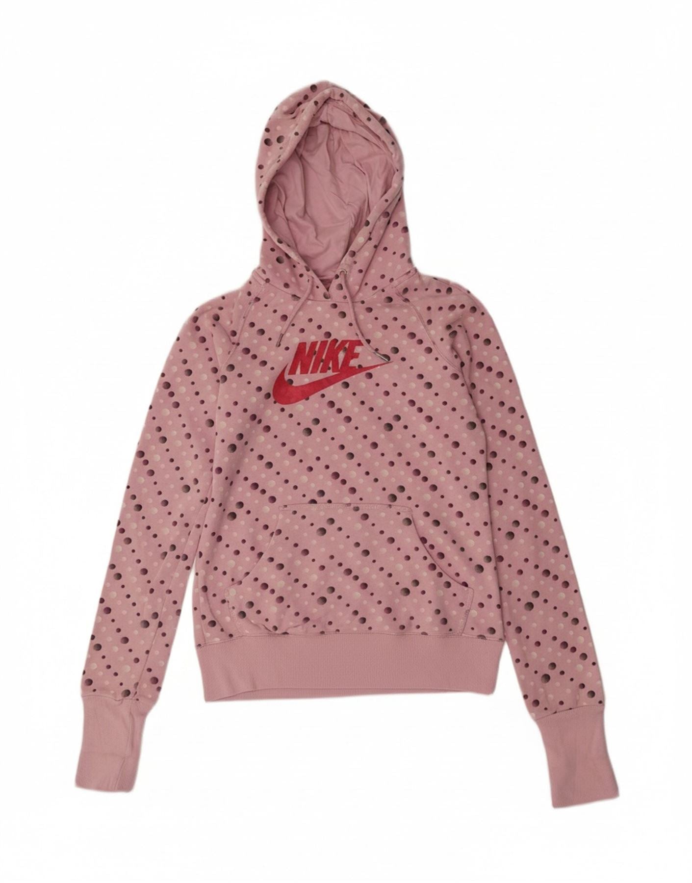 NIKE Womens Graphic Hoodie Jumper UK 10 Small Pink Spotted Cotton