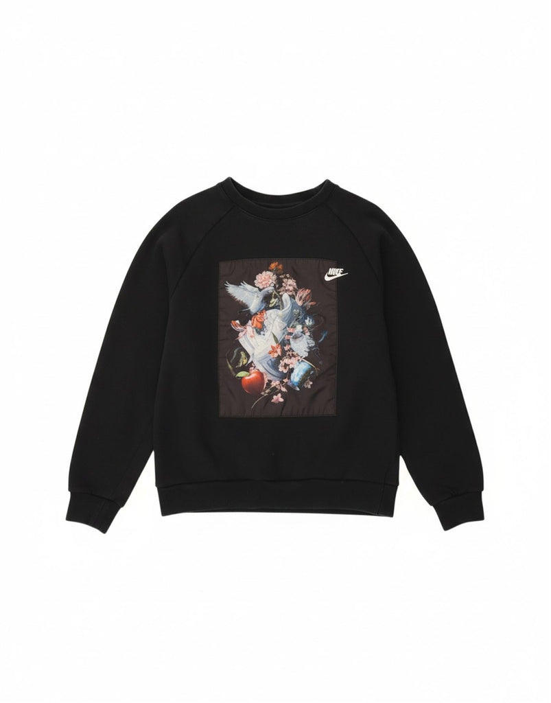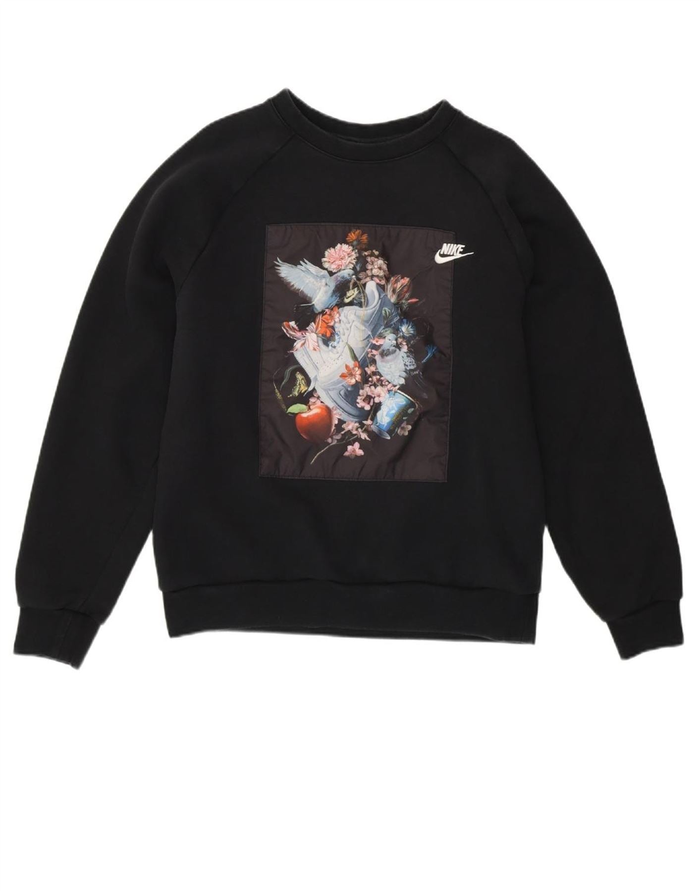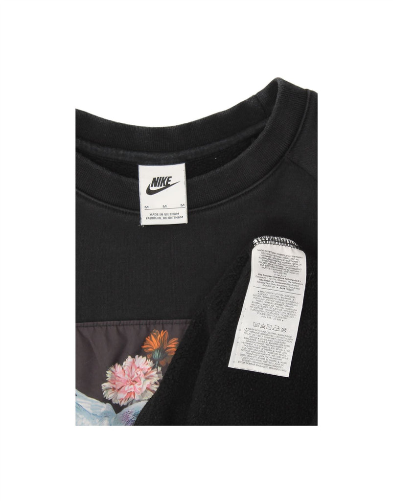 NIKE Womens Graphic Sweatshirt Jumper UK 14 Medium Black Cotton