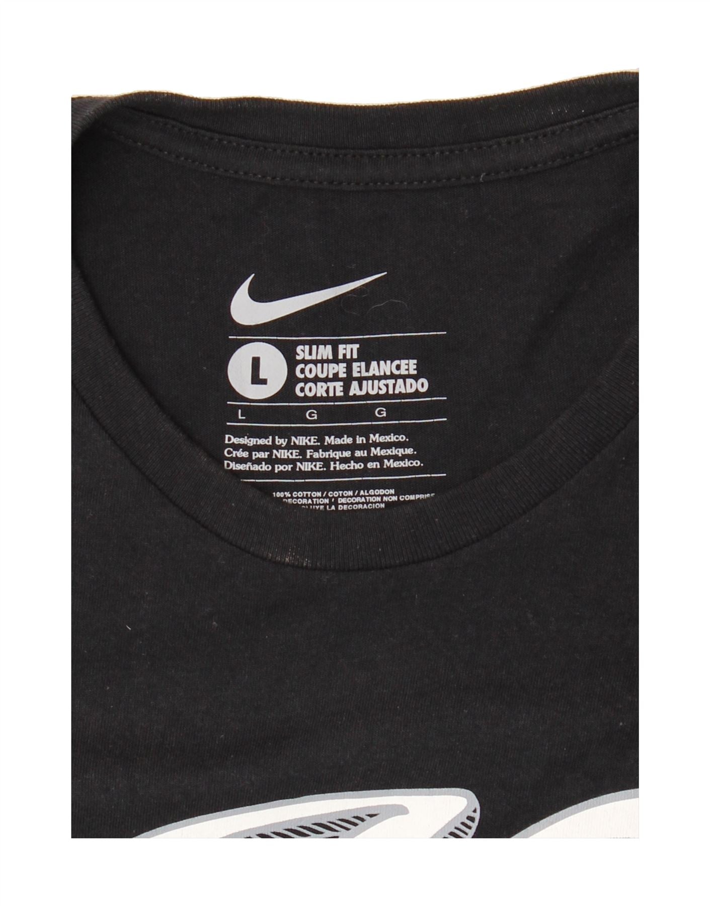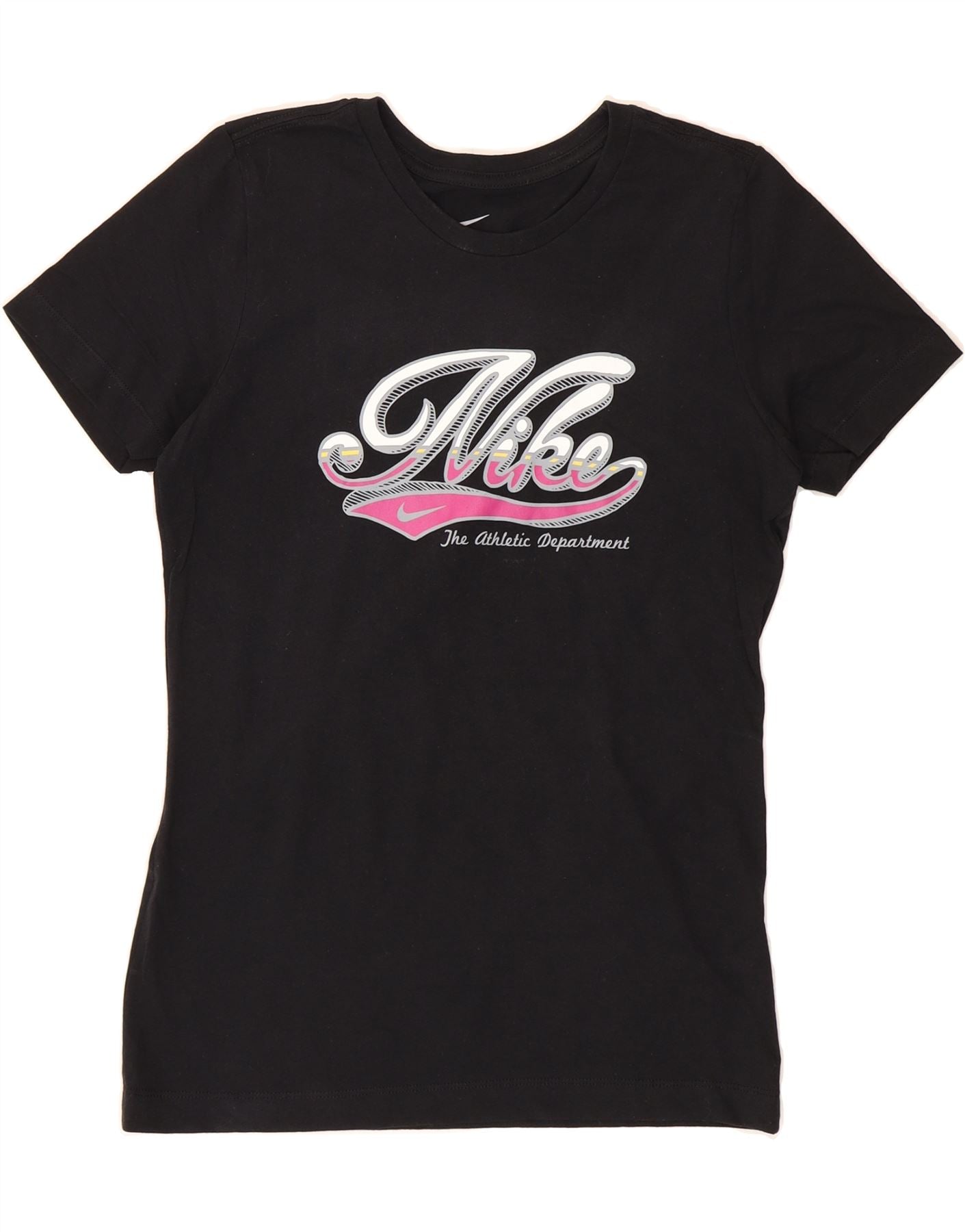 NIKE Womens Slim Fit Graphic T-Shirt Top UK 14 Large Black Cotton