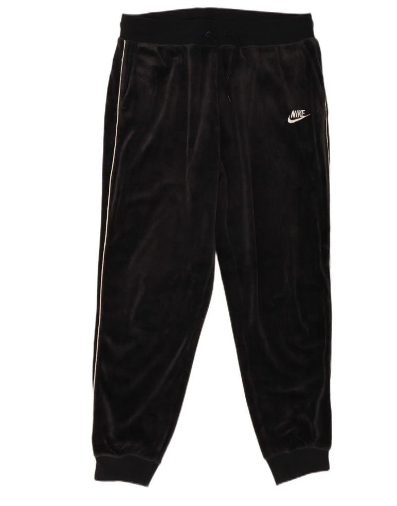 NIKE Womens Velour Tracksuit Trousers Joggers UK 14 Medium Black