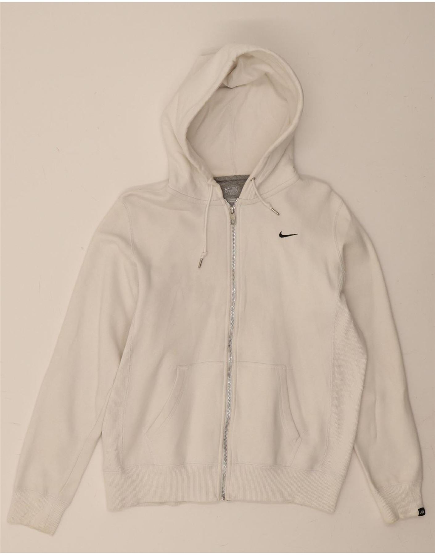 NIKE Womens Zip Hoodie Sweater UK 16 Large White Cotton