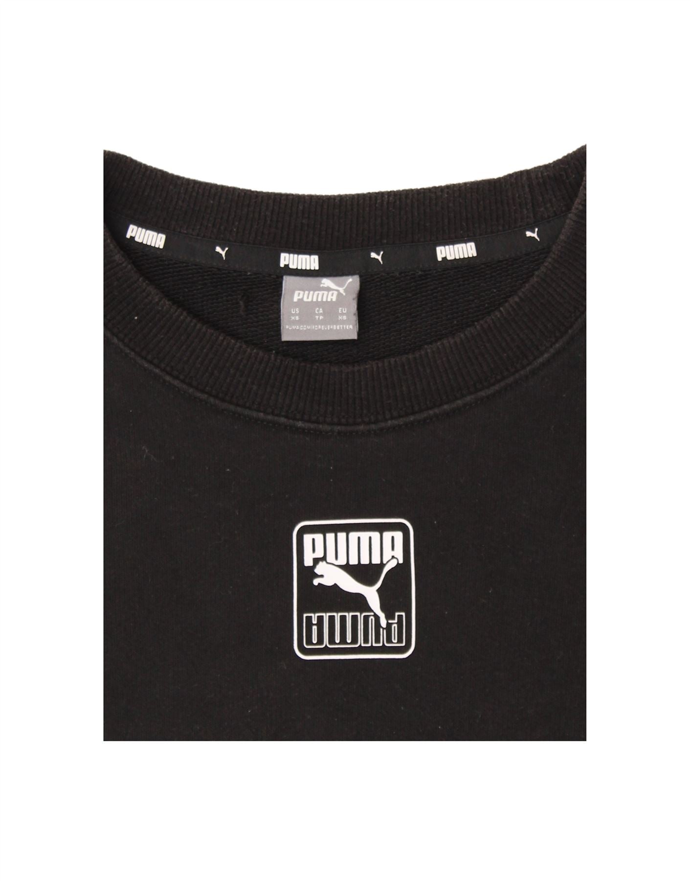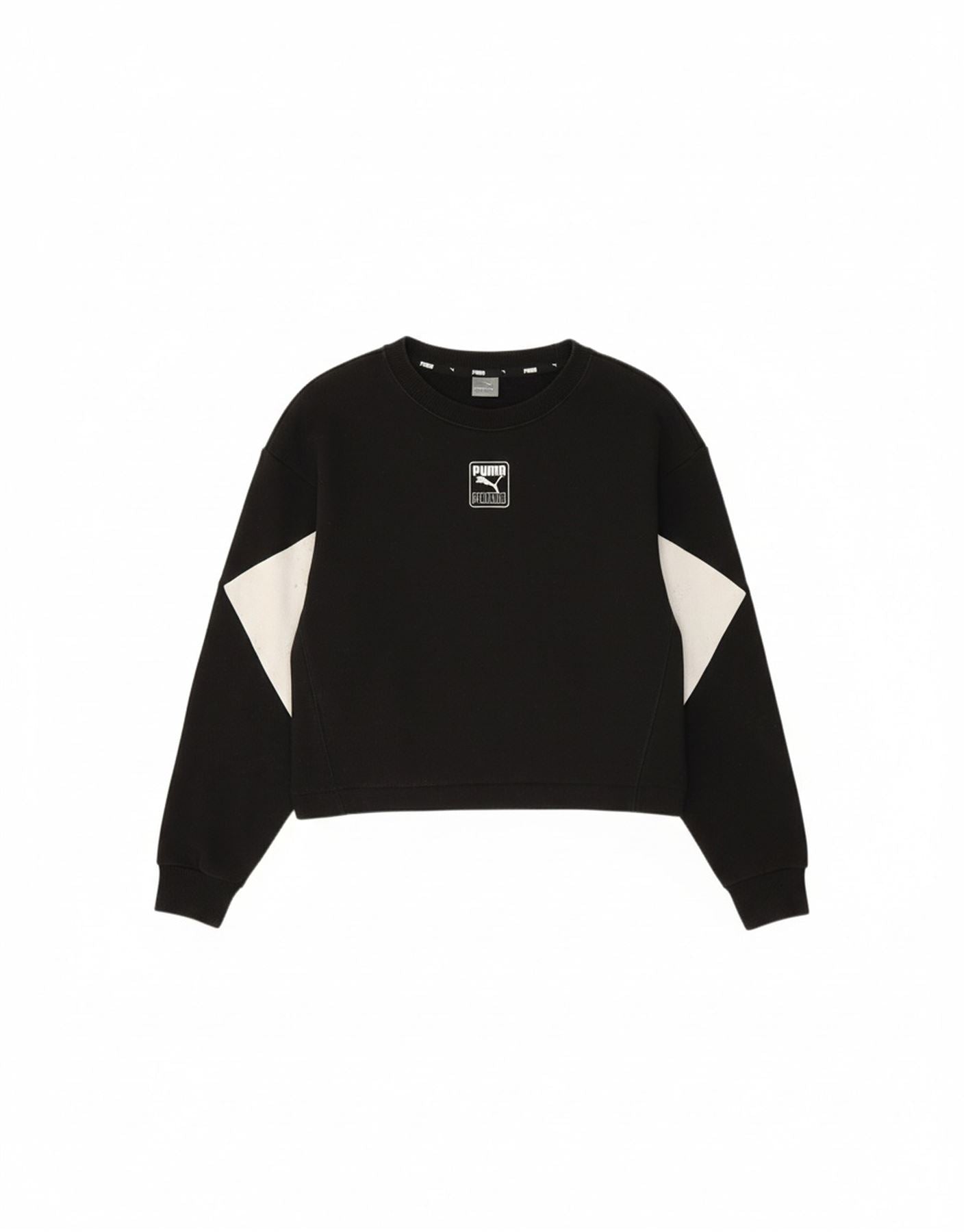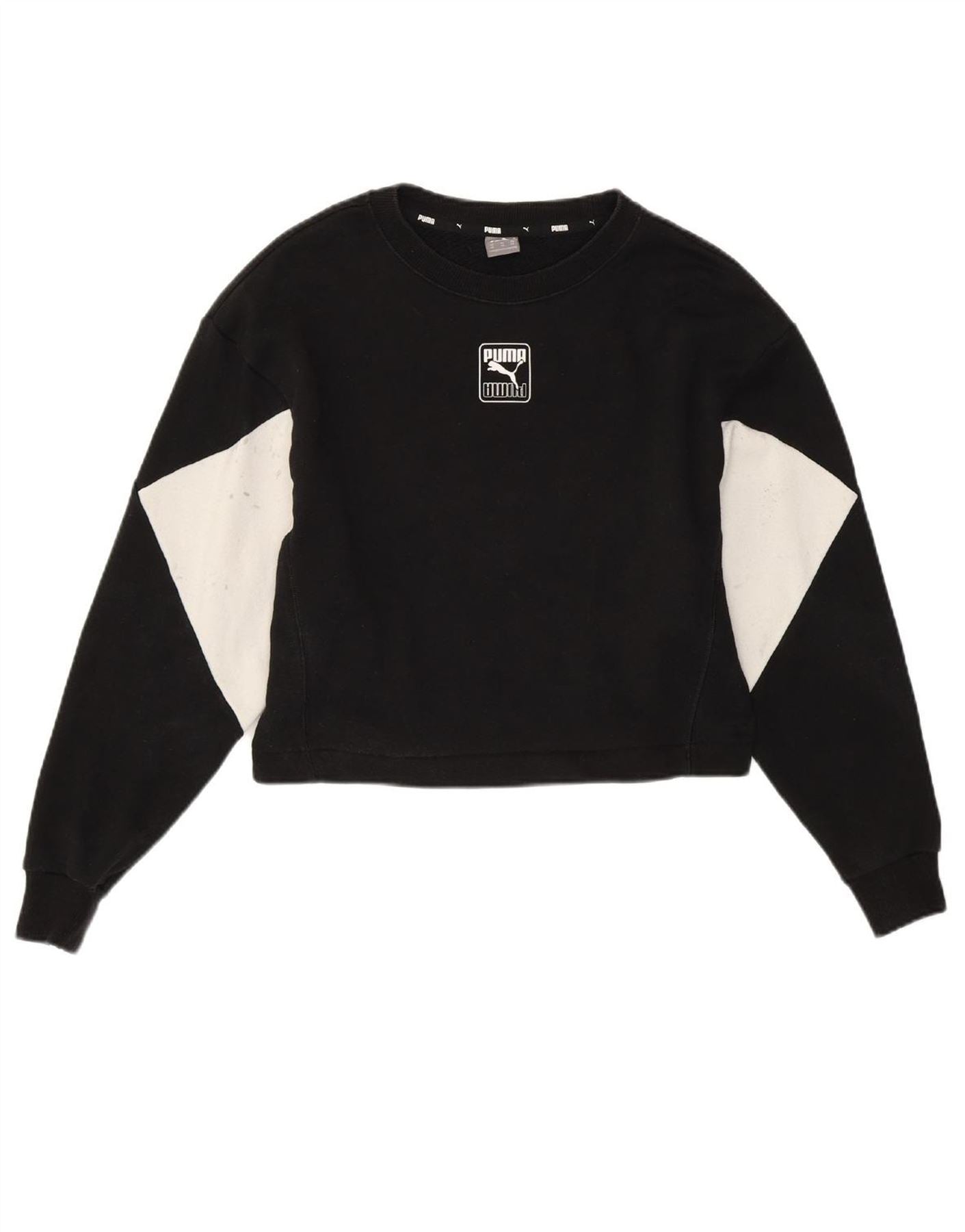 PUMA Womens Crop Graphic Sweatshirt Jumper UK 6 XS Black Colourblock
