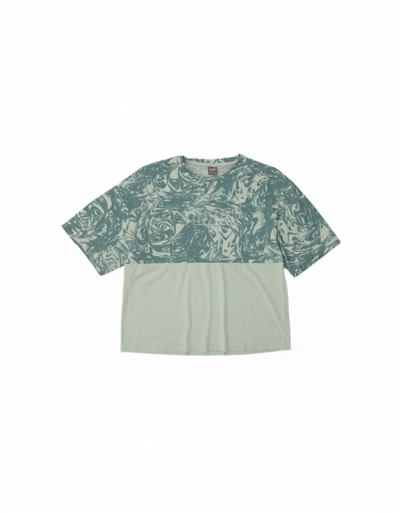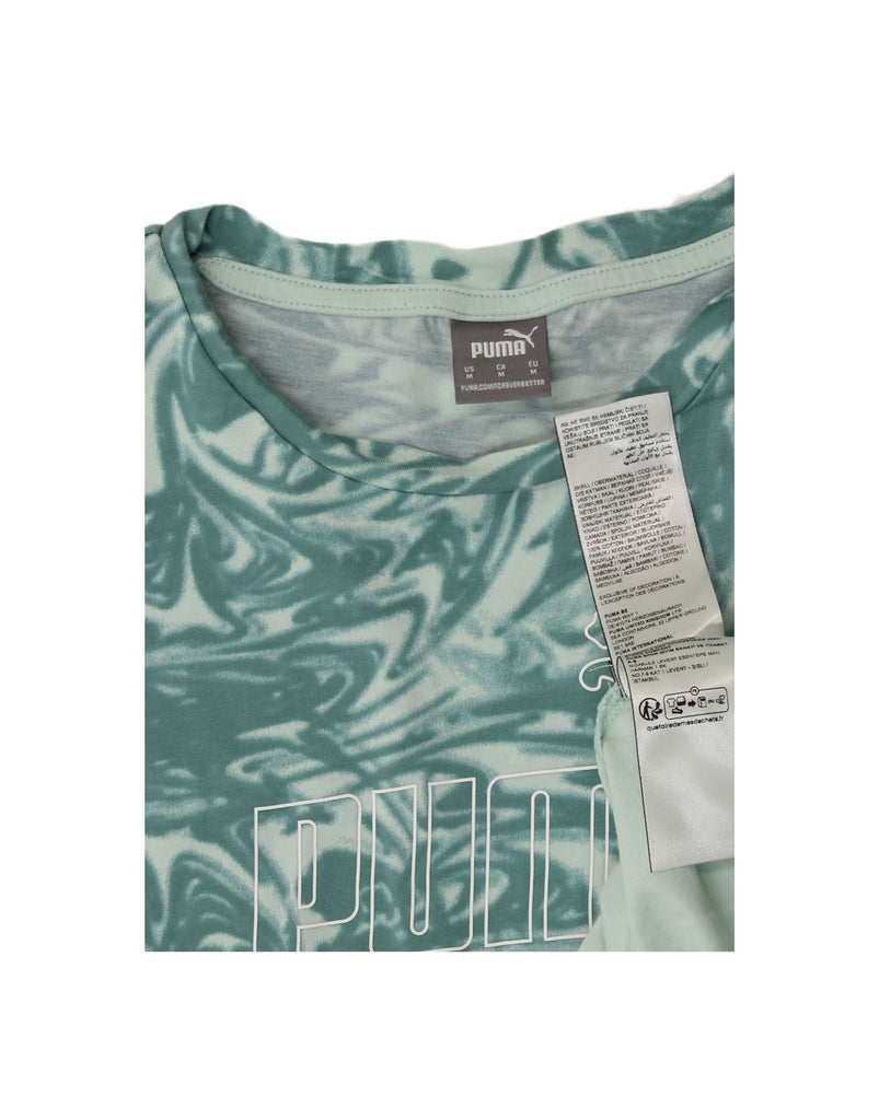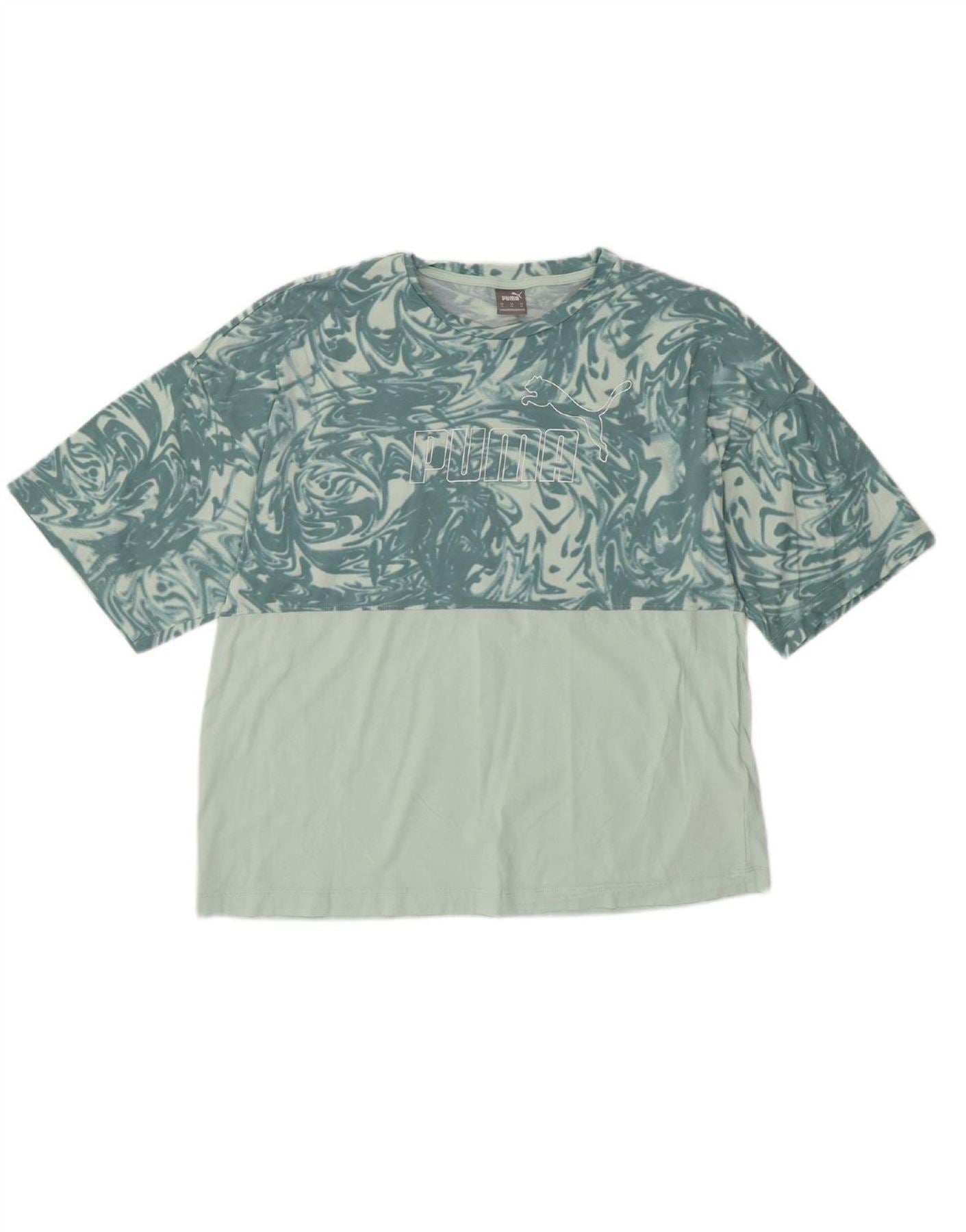 PUMA Womens Graphic T-Shirt Top UK 14 Medium Green Colourblock Cotton