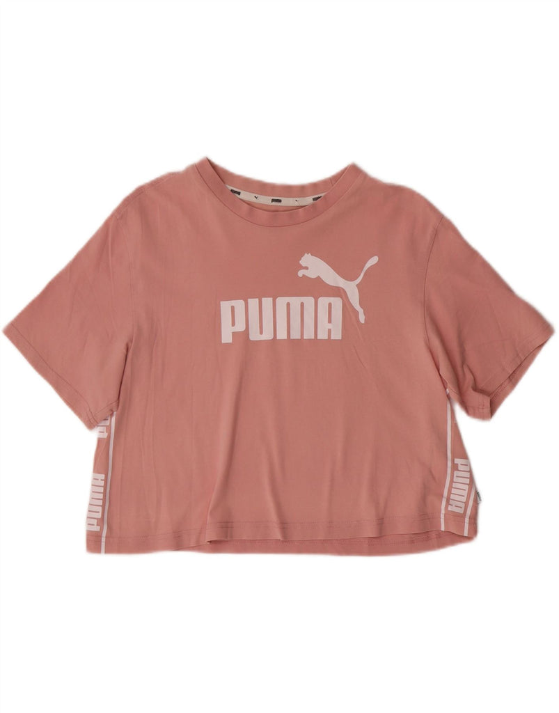 PUMA Womens Loose Fit Crop Graphic T-Shirt Top UK 10 Small Pink Cotton