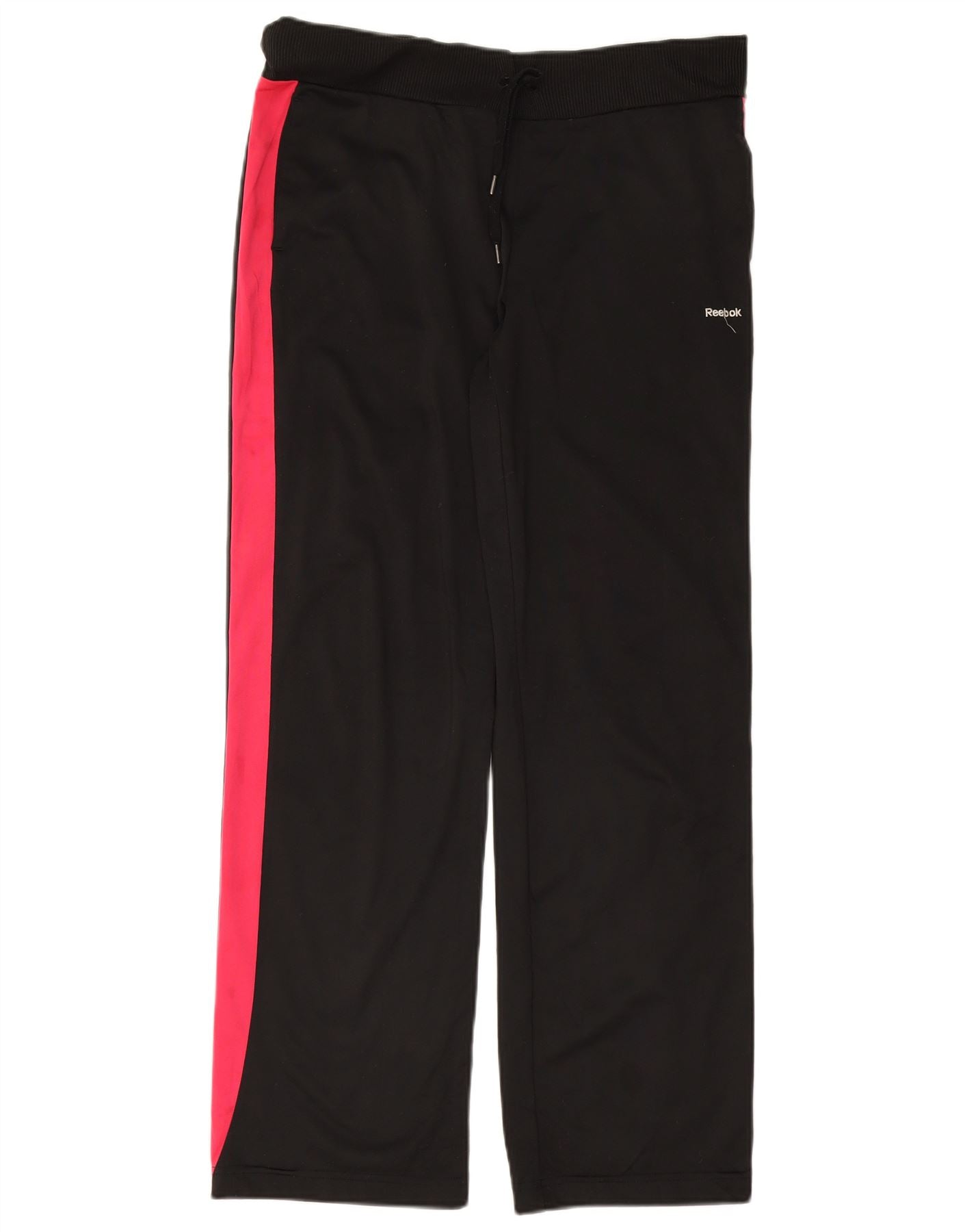 REEBOK Womens Tracksuit Trousers UK 14 Medium Black Colourblock