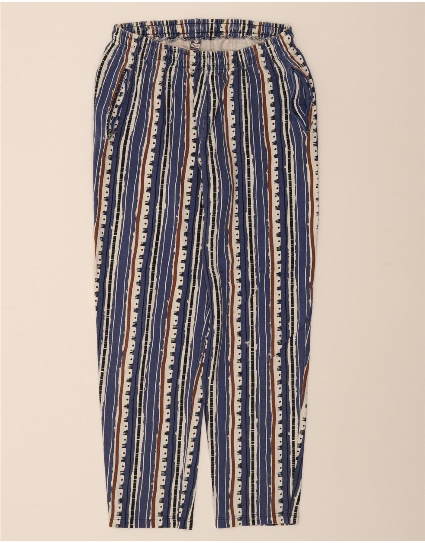 TRIGEMA Womens Tracksuit Trousers UK 14 Medium Blue Striped Cotton