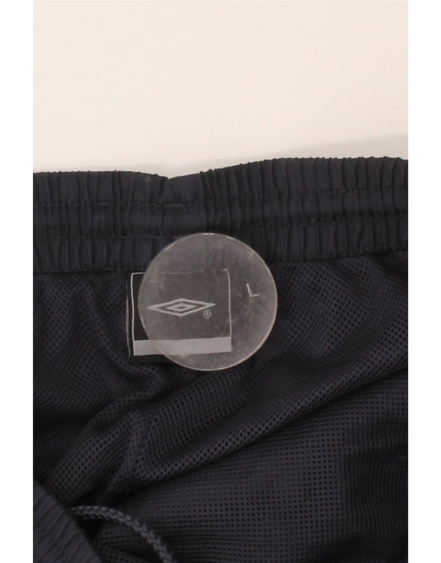 - AI Description: These Umbro mens tracksuit trousers are crafted from a lightweight, navy blue woven fabric. They offer a relaxed, loose fit, ensuring ultimate comfort and freedom of movement. The pull-on style features an elasticated and adjustable waist for a secure and custom fit. Practical pockets provide storage, and the trousers are lined for added comfort. A subtle brand logo accents the design. Their windproof construction makes them ideal for football and other sports activities.
