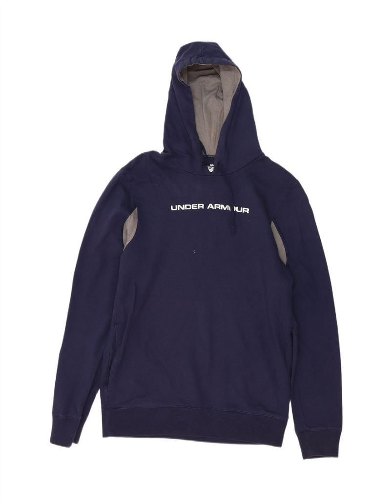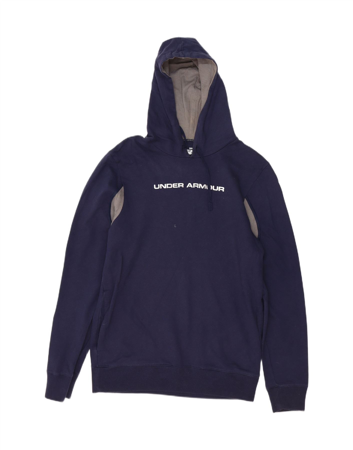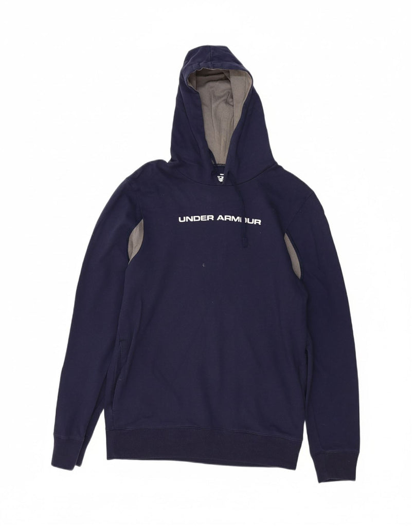 UNDER ARMOUR Mens Graphic Hoodie Jumper Medium Navy Blue Colourblock