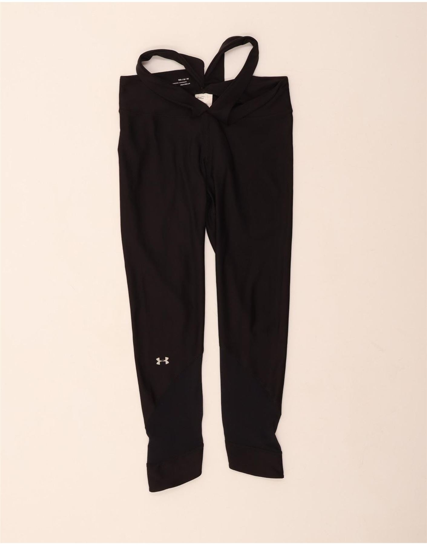 UNDER ARMOUR Womens Heat Gear Crop Leggings UK 14 Medium Black Polyester