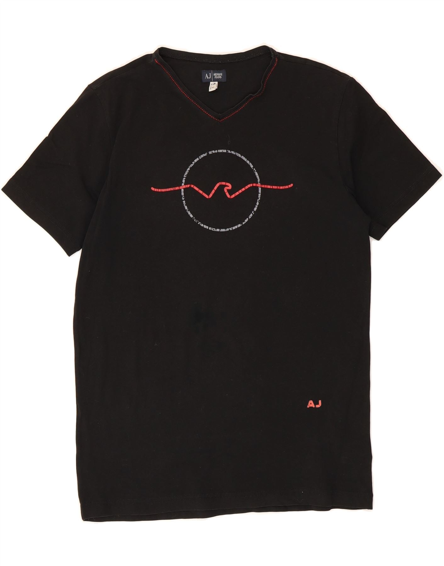 ARMANI JEANS Womens Graphic T-Shirt Top UK 14 Large Black Cotton